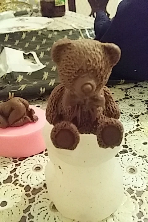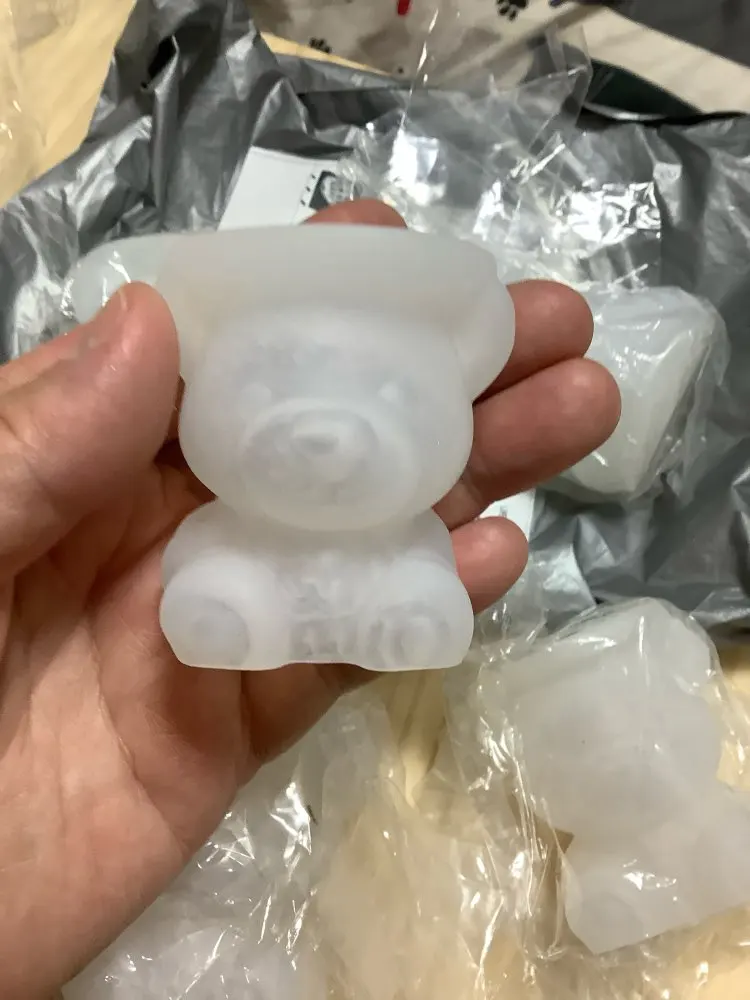 все супер! посылка пришла быстро, мишка получается очень красивым! единственное, надо научиться его аккуратно доставать из формочки, самое трудное- это голова, идет трудновато.