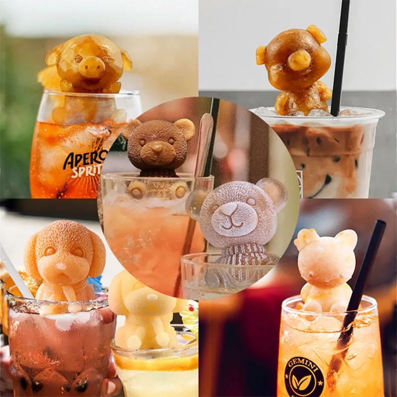 Силиконовая форма для кубиков льда, милое животное, форма для кубиков льда, абразивная 3D форма для кубиков льда, силиконовая форма для креативного кофе, молока, чая, льда