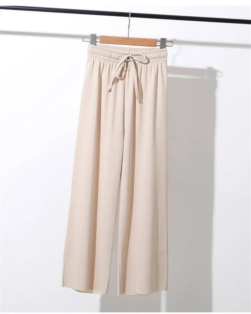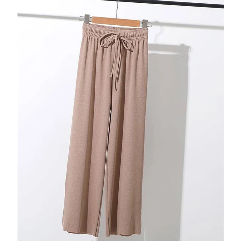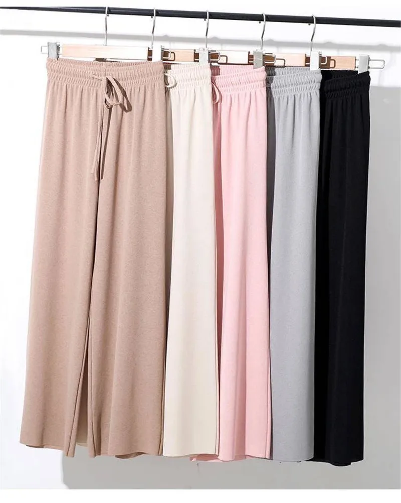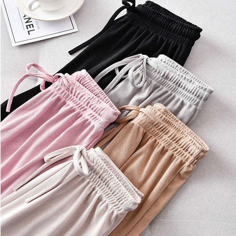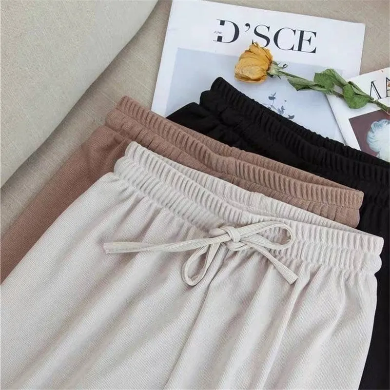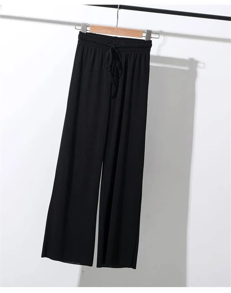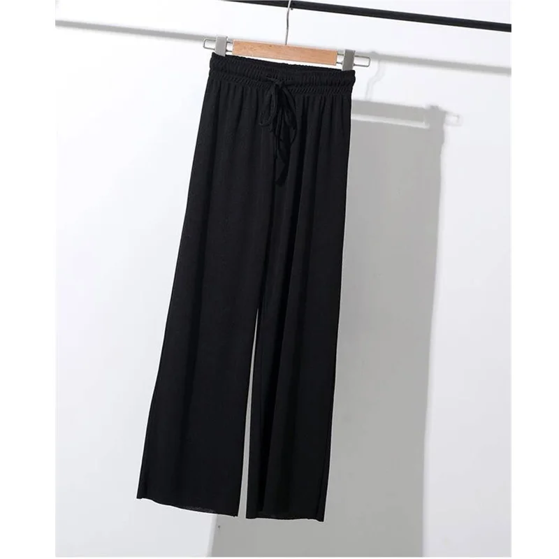 Брюки женские трикотажные летние черные, длиной до щиколотки, с эластичной резинкой на талии, P703, размера плюс