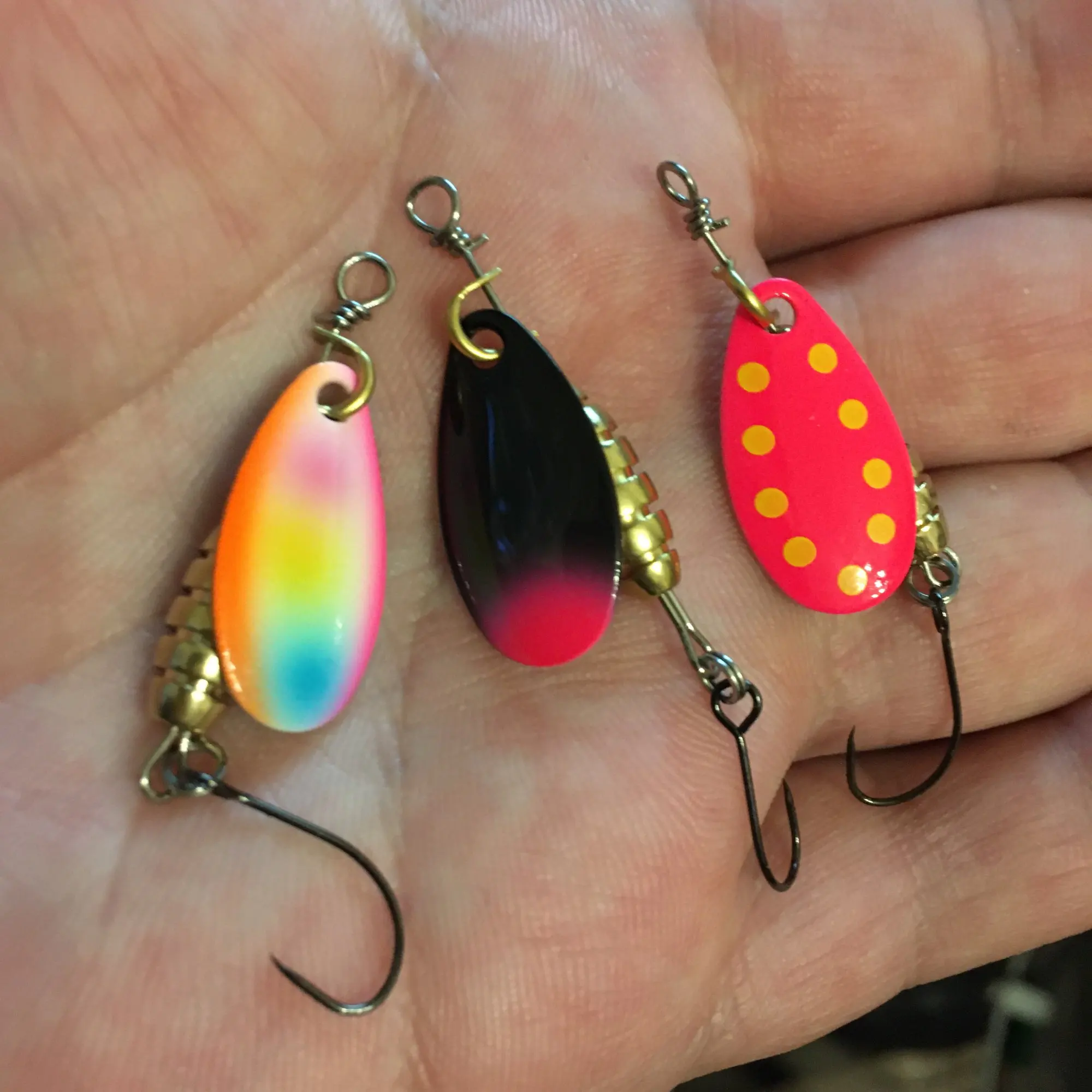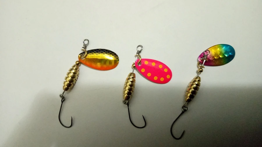 Маленький Спиннер форели, но красивый тяжелый. Если размер тяжелее, чем у многих похожих вертушек, если обычные широкие конструкции также позволяют вертушке иметь уже крючок без заднего крючка, будьте внимательны!