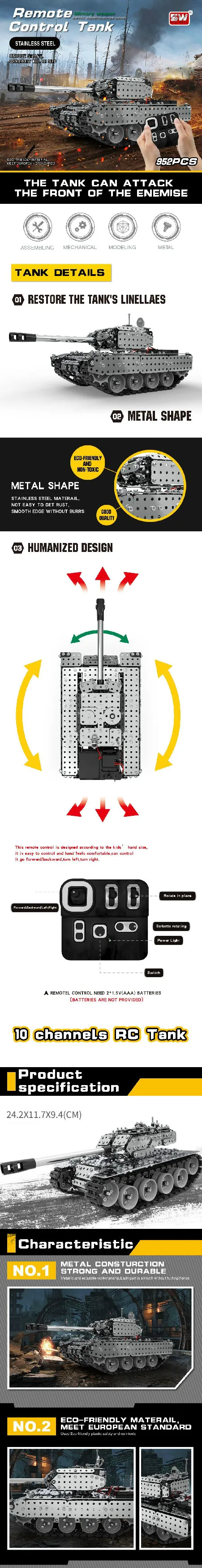 2,4G 10CH RC Танк DIY из нержавеющей стали собрать автомобиль Танк Металл RC модель автомобиля сборная игрушка для детей