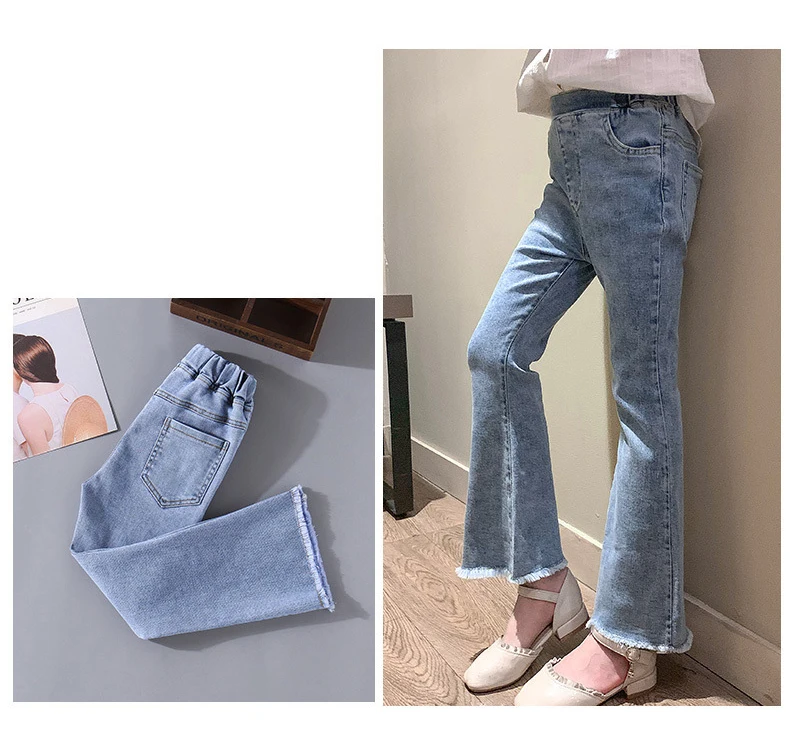 Джинсы-клеш хлопковые для девочек-подростков, на весну-осень