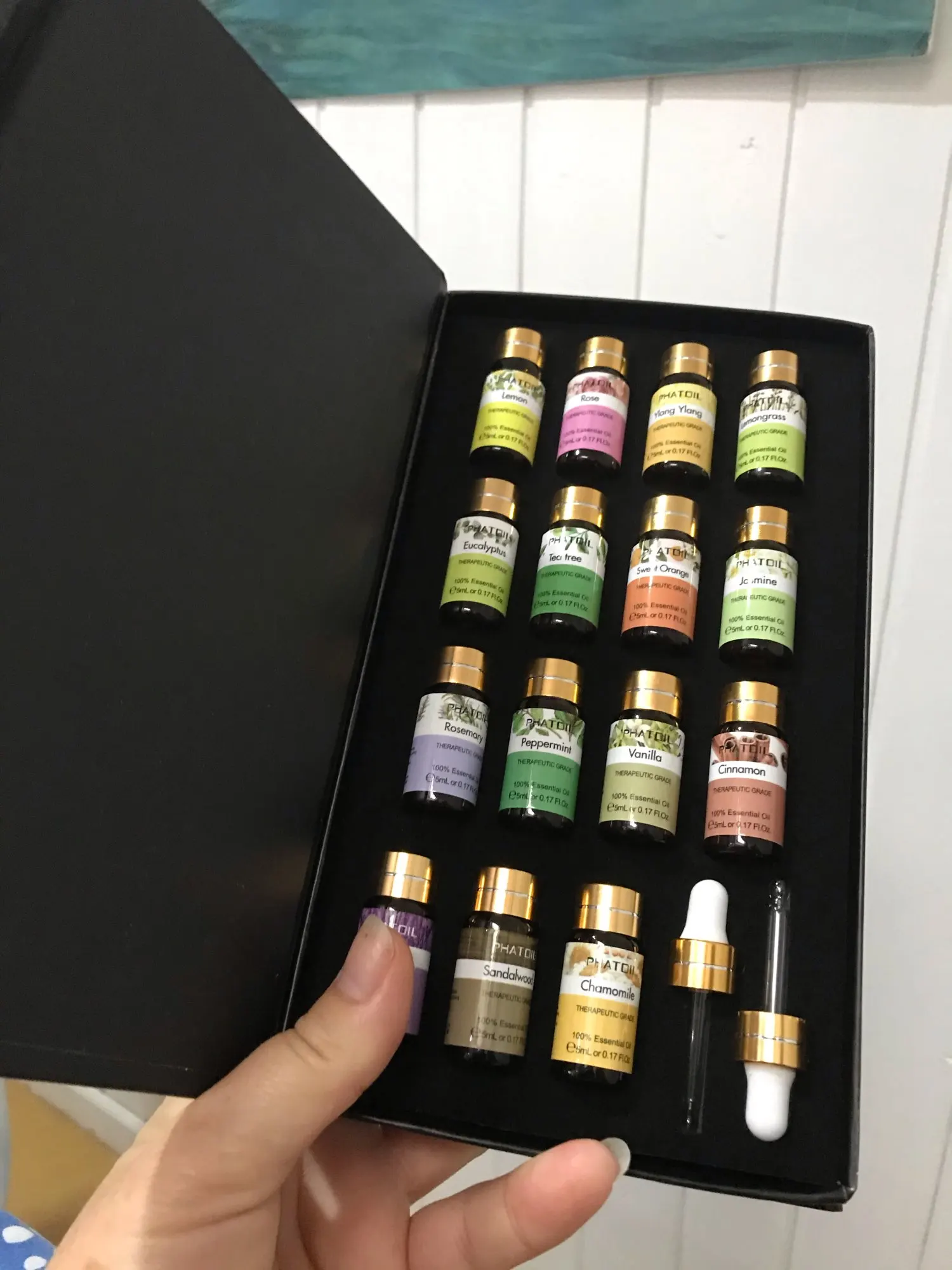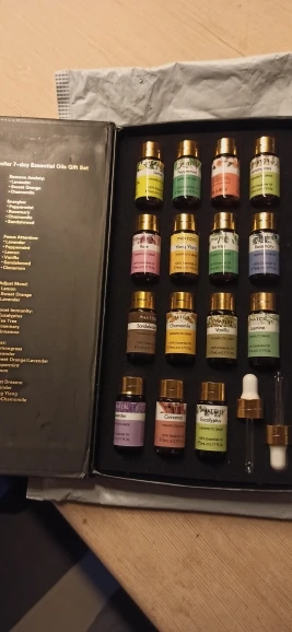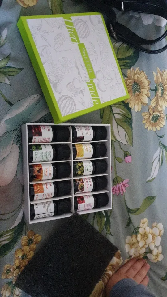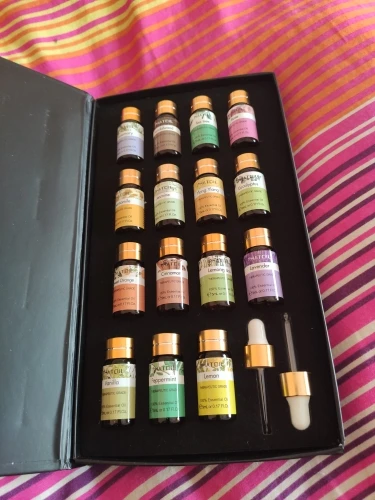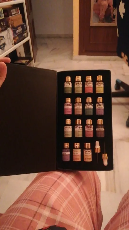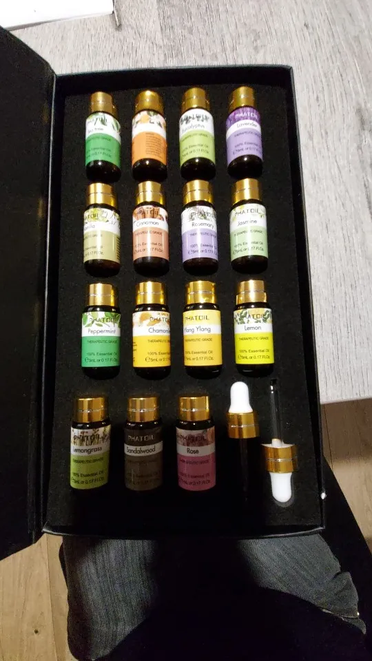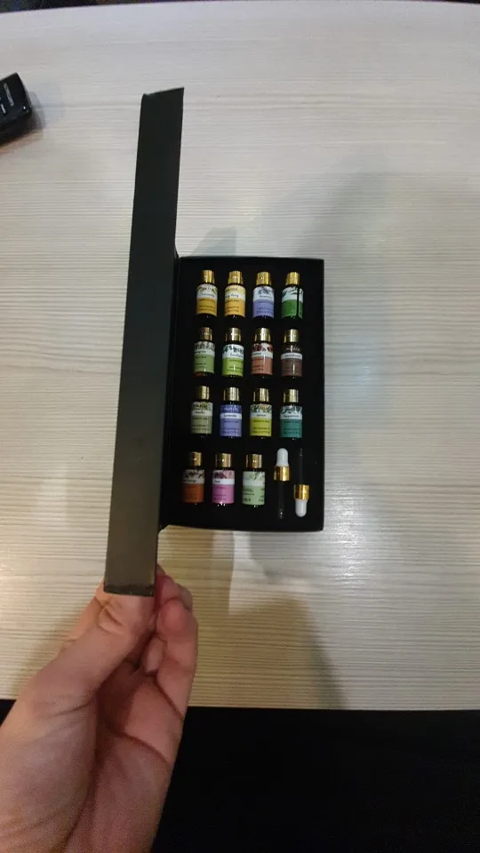 Это красивый набор. Хорошая презентация и хорошее качество. Бутылки очень маленькие 5 мл. Но хорошо для тестирования разных масел. Он поставляется в презентационном футляре с пипетками. Я рекомендую продавца и продукт