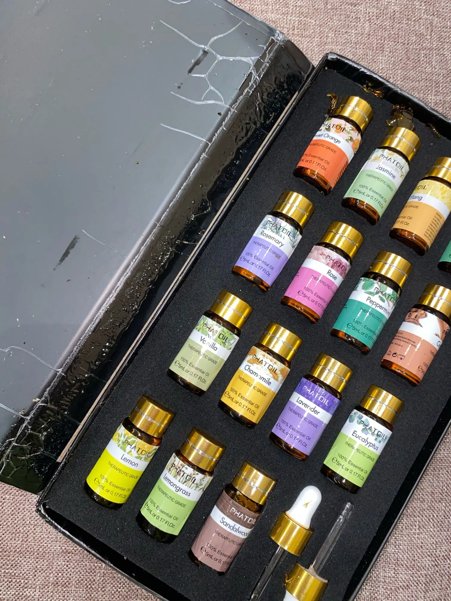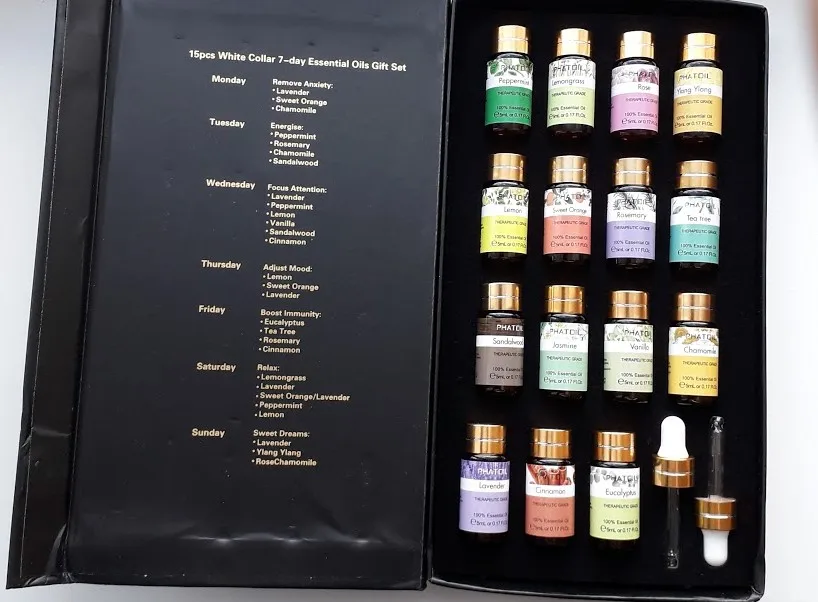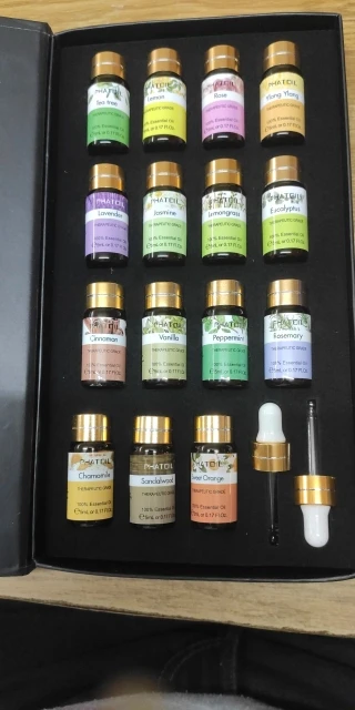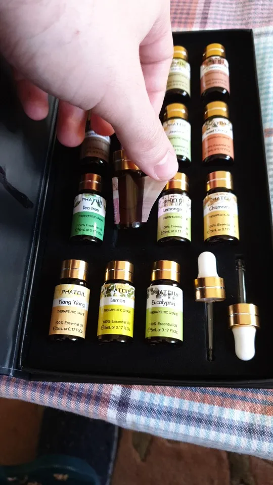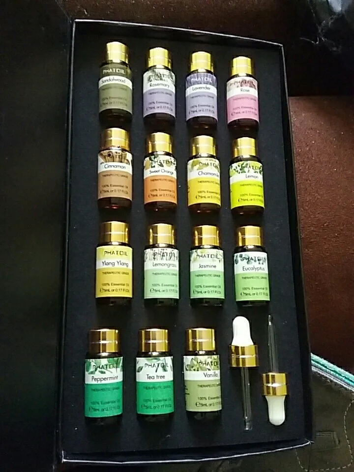 Это красивый набор. Хорошая презентация и хорошее качество. Бутылки очень маленькие 5 мл. Но хорошо для тестирования разных масел. Он поставляется в презентационном футляре с пипетками. Я рекомендую продавца и продукт