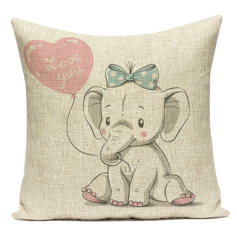 Декоративные подушки из полиэстера, с милыми мультяшными животными, слонами, для дивана, дома, гостиной