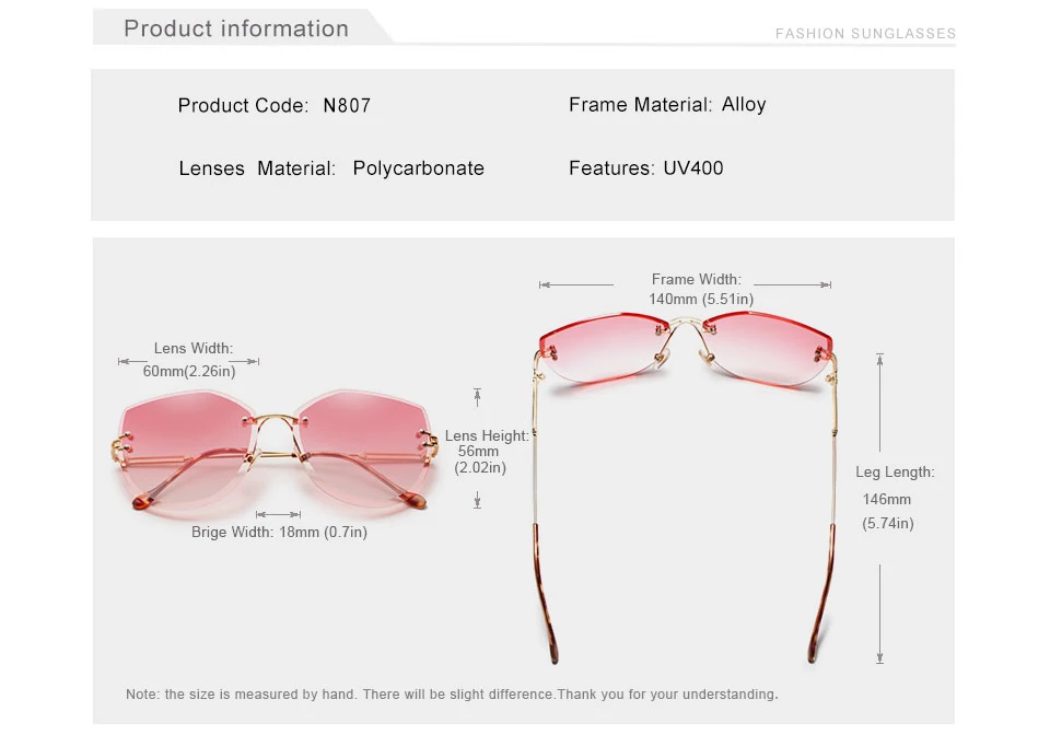 Солнцезащитные очки женские, Овальные, без оправы, в винтажной опра...