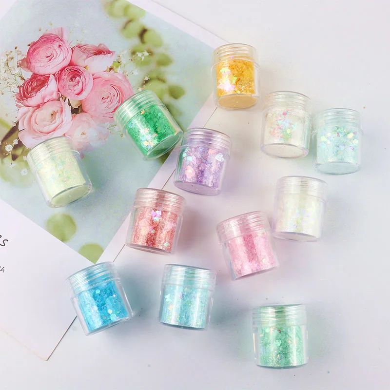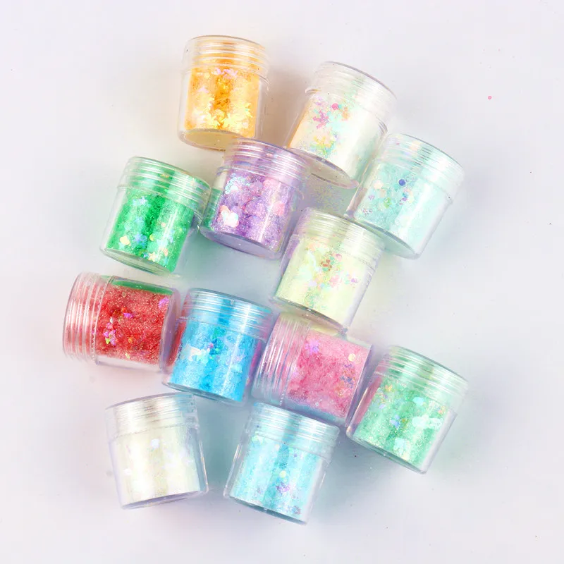 Розовый милый 3D Блеск для ногтей Блестки Блестящий голографический порошок для ногтей хлопья Маникюр ультратонкие Блестки для ногтевого дизайна хромированный Пигмент 10 мл
