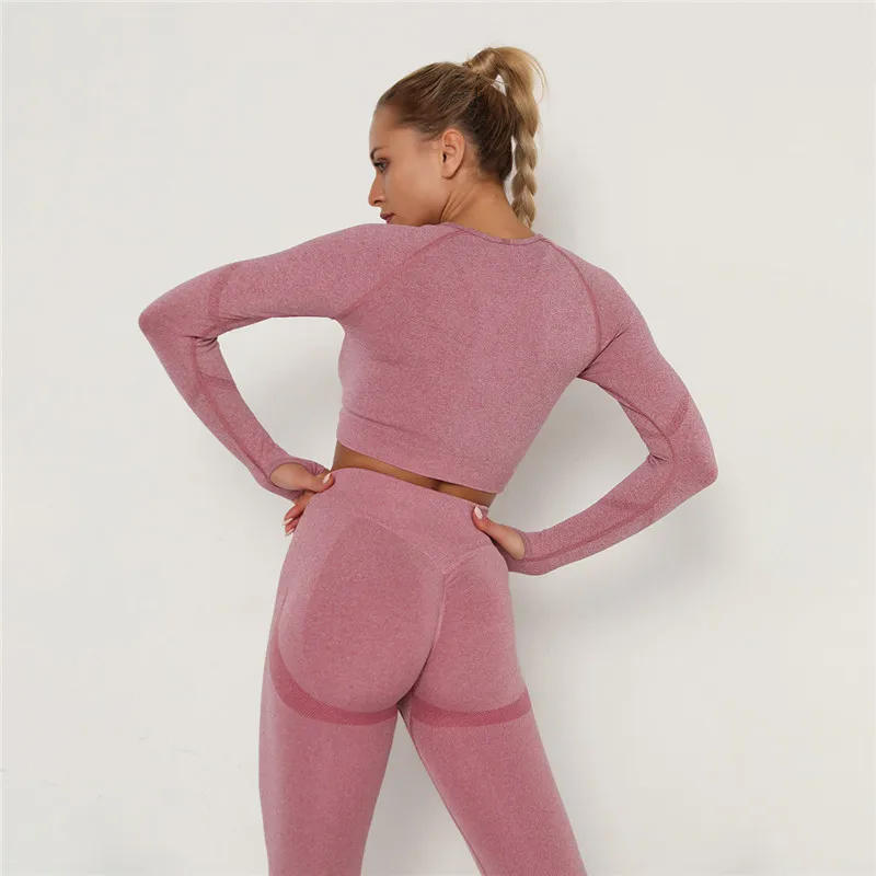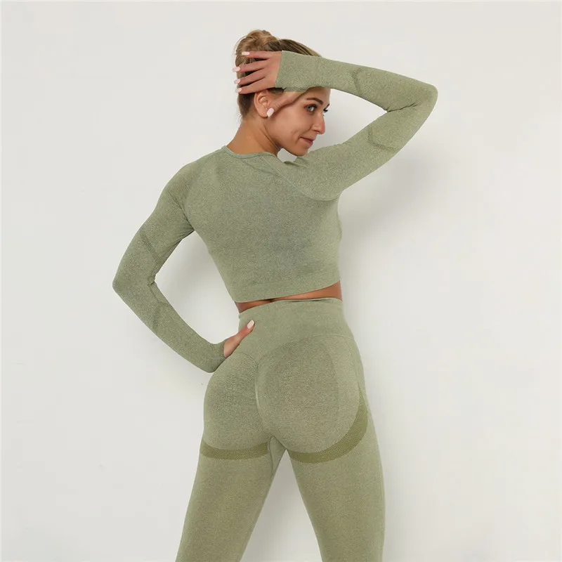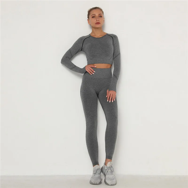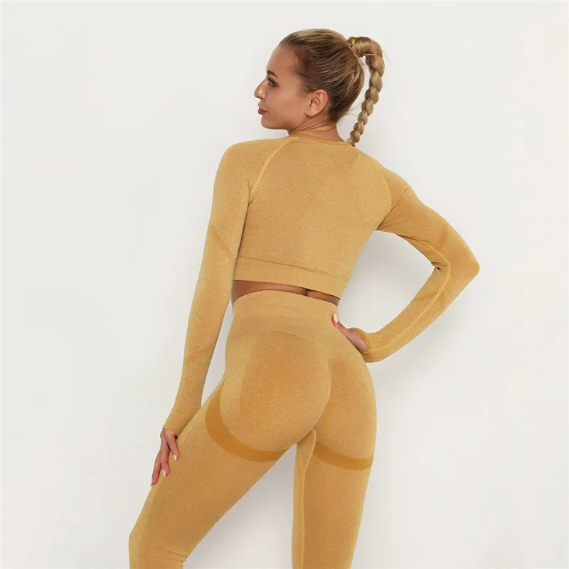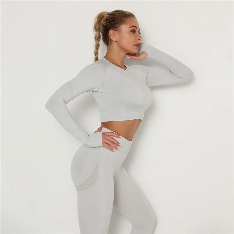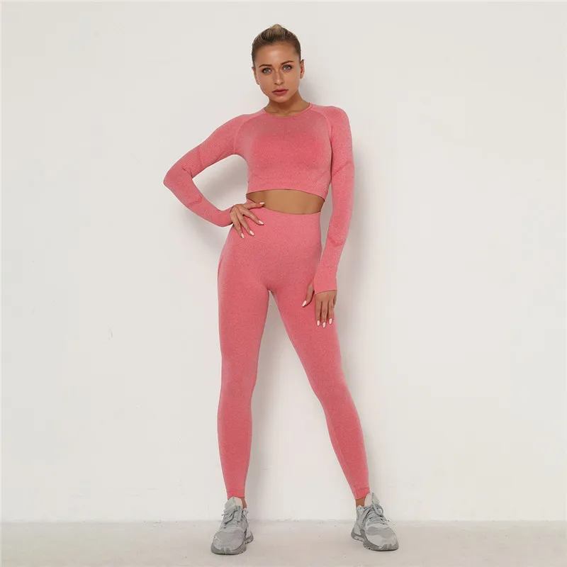 Женская бесшовная одежда для тренажерного зала, спортивный костюм для фитнеса, комплект для тренировок, женский спортивный костюм, спортивная рубашка из 2 предметов, топ, бесшовные леггинсы, спортивный комплект