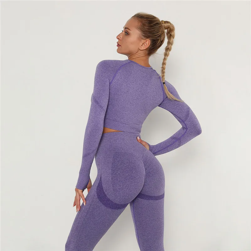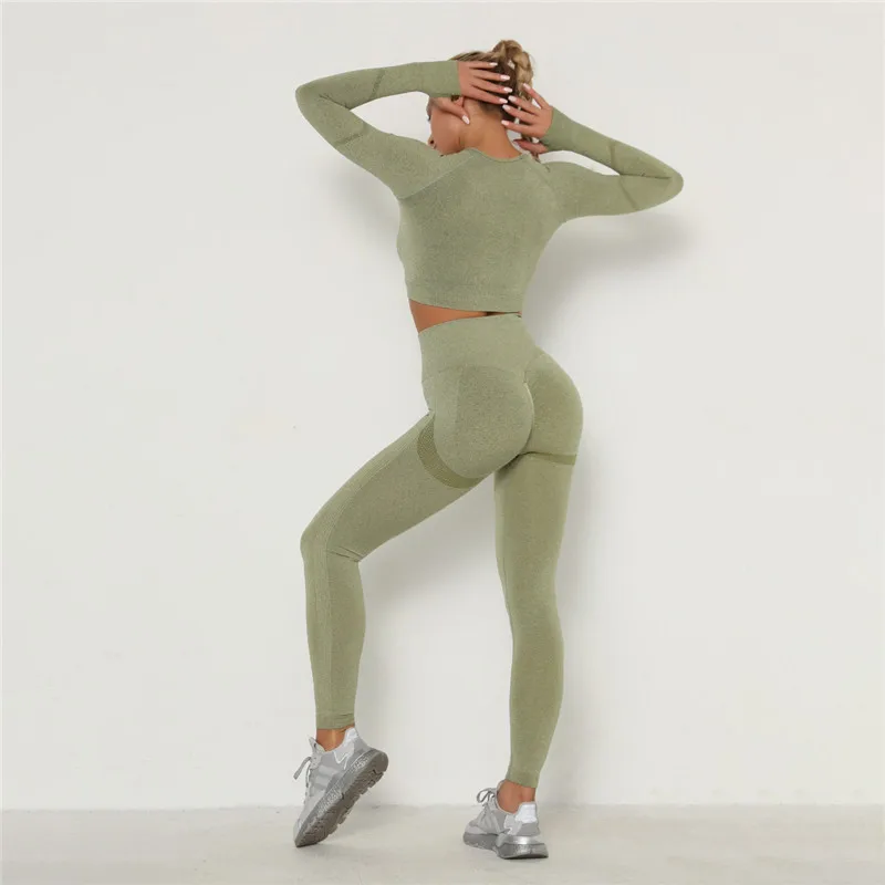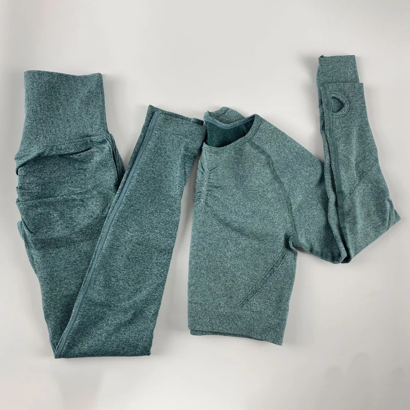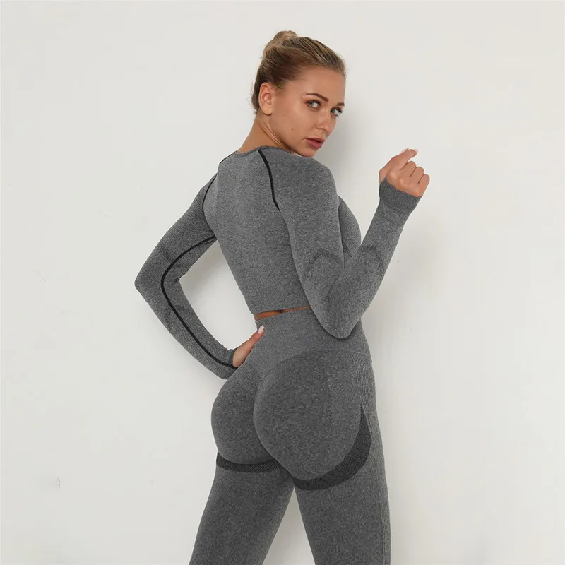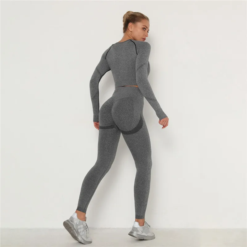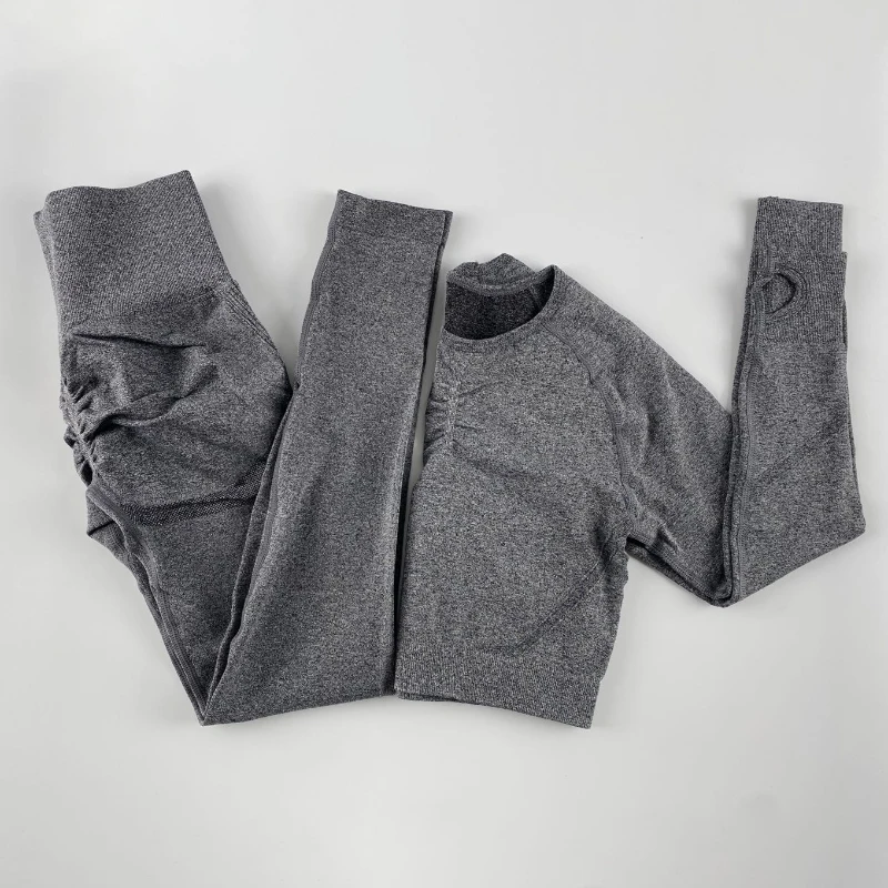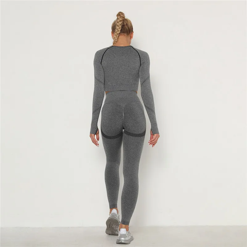 Женская бесшовная одежда для тренажерного зала, спортивный костюм для фитнеса, комплект для тренировок, женский спортивный костюм, спортивная рубашка из 2 предметов, топ, бесшовные леггинсы, спортивный комплект