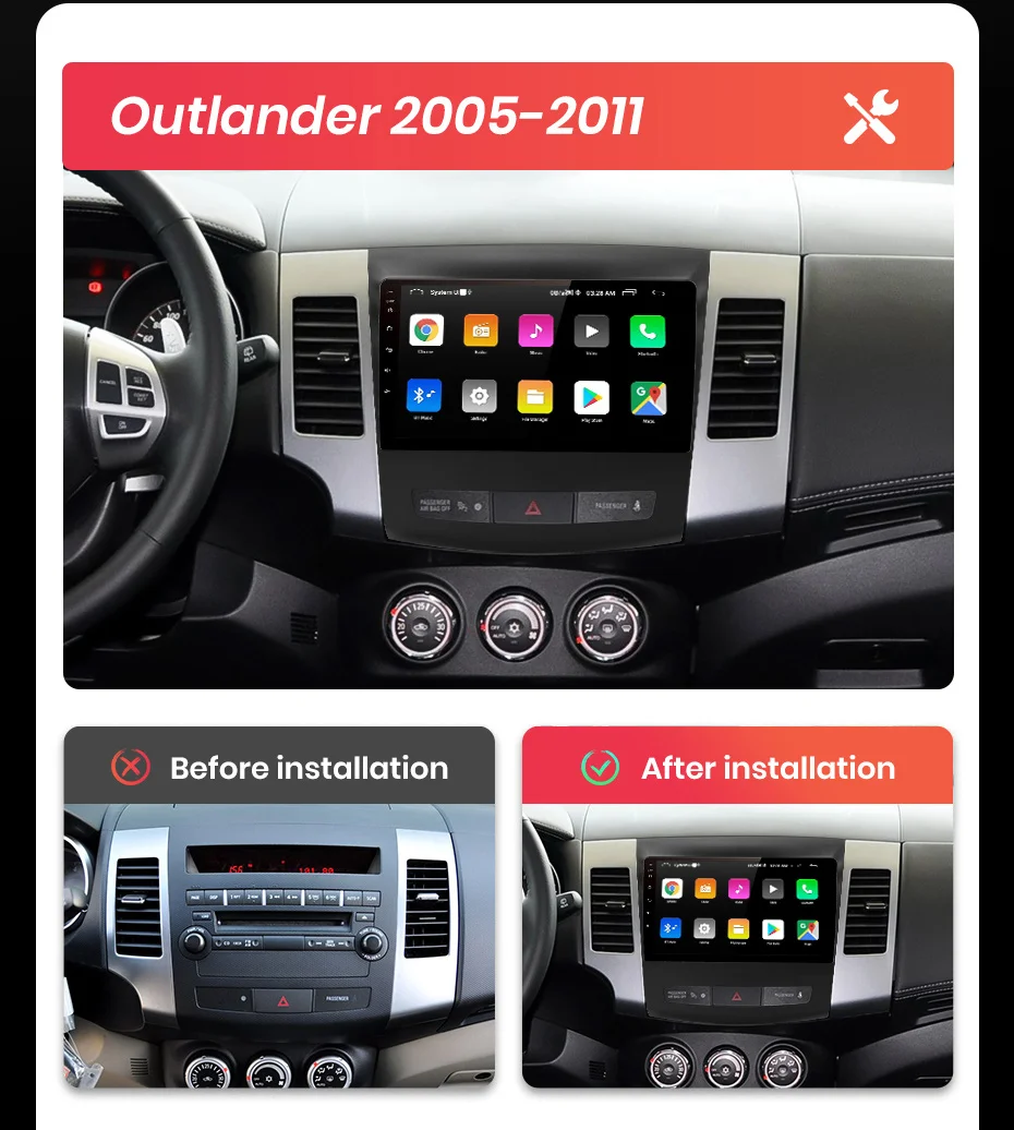 Автомагнитола Mitsubishi Outlander xl 2, мультимедийный видеоплеер 9 "на платформе Android 9,1 с GPS-навигацией, Wi-Fi, 2 Гб + 32 ГБ