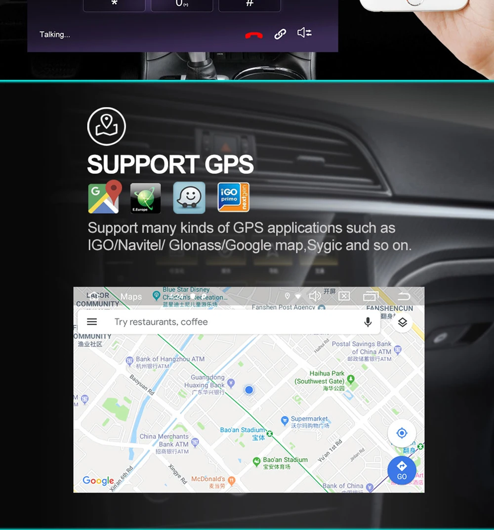 1.Wi-Fi подключение: встроенный модуль Wi-Fi, может подключаться к Интернету через Wi-Fi горячее место, скачать приложение для просмотра онлайн-телевизора, фильма, чата с вашими фирмами2. Gps-навигация: Встроенный навигационный модуль, Бесплатная навигационная карта (включая большинство стран слова), Поддержка многоязычного интерфейса/голосовой навигации3. Функция Bluetooth: Встроенный модуль bluetooth, поддержка подключения телефона по bluetooth, громкая связь для звонков или воспроизведение музыки по bluetooth4. Функция зеркальной связи: проигрыватель Android MP5 может зеркальной связью с телефоном Android с помощью usb-кабеля (ссылка на телефон IOS по WIFI), вы можете прикоснуться к экрану MP5, чтобы управлять телефоном на AndroidТелефон IOS не может работать с сенсорным экраном MP5 (не подходит для всех телефонов)5. Функция входного сигнала DVR: Поддержка внешнего видеорегистратора USB (DVR) вход (только для DVR с приложением), вы можете управлять видеорегистратором с помощью приложения6. Функция заднего вида: Поддержка входа камеры заднего вида, поддержка автомобиля более безопасная и удобная7. Настройка радио: Поддержка настройки FM, вы можете слушать радио, которое вас интересует, наслаждаться временем вождения8. Задний usb-порт Вход: Поддержка заднего кабеля USB вход, может воспроизводить музыку/фильм (u-диск не входит в комплект)Разрешение 9,1020*600: приносит вам высокое качество визуального опыта10. Улучшите качество звука с эквалайзером, используйте эквалайзер для регулировки звука, чтобы сделать лучшие результаты11. Поддержка изменения логотипа автомобиля12. Поддержка управления рулевым колесом13. Сервис Google-Play Store , Gmail , Google maps и т. Д. Поддерживает множество приложений для карт, которые вы можете скачать в Google shop ( Careland , Yandex , IGO и т. Д.)14. Поддержка онлайн и оффлайн карт, I-GO ; Sygic ; Navitel maps, других стран I-GO или Sygic maps.15. Поддержка цифрового ТВ CMMB (опционально)16. Поддержка USB DVR (опционально)17. Поддержка TMPS (опционально)18. Поддержка OBD (опционально)19. Поддержка DAB (опционально)