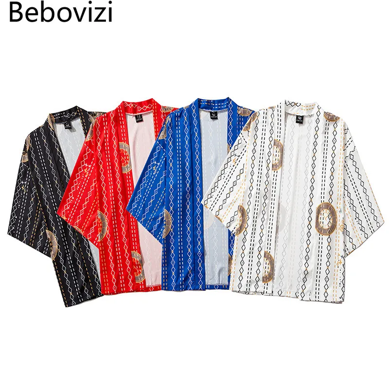 Уличная одежда Bebovizi в японском стиле, юката с геометрическим рисунком для мужчин и женщин, кардиган, пальто, блузка, Харадзюку, халат, японское кимоно, одежда хаори, 2020