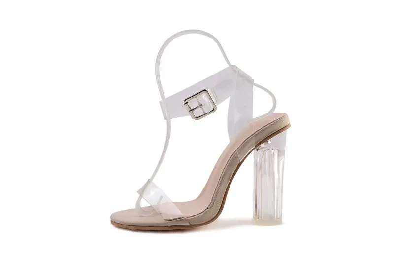 Женские босоножки на высоком каблуке с открытым носком; Прозрачные вечерние сандалии-гладиаторы из ПВХ с ремешком на щиколотке; Летние туфли; Пляжные сандалии