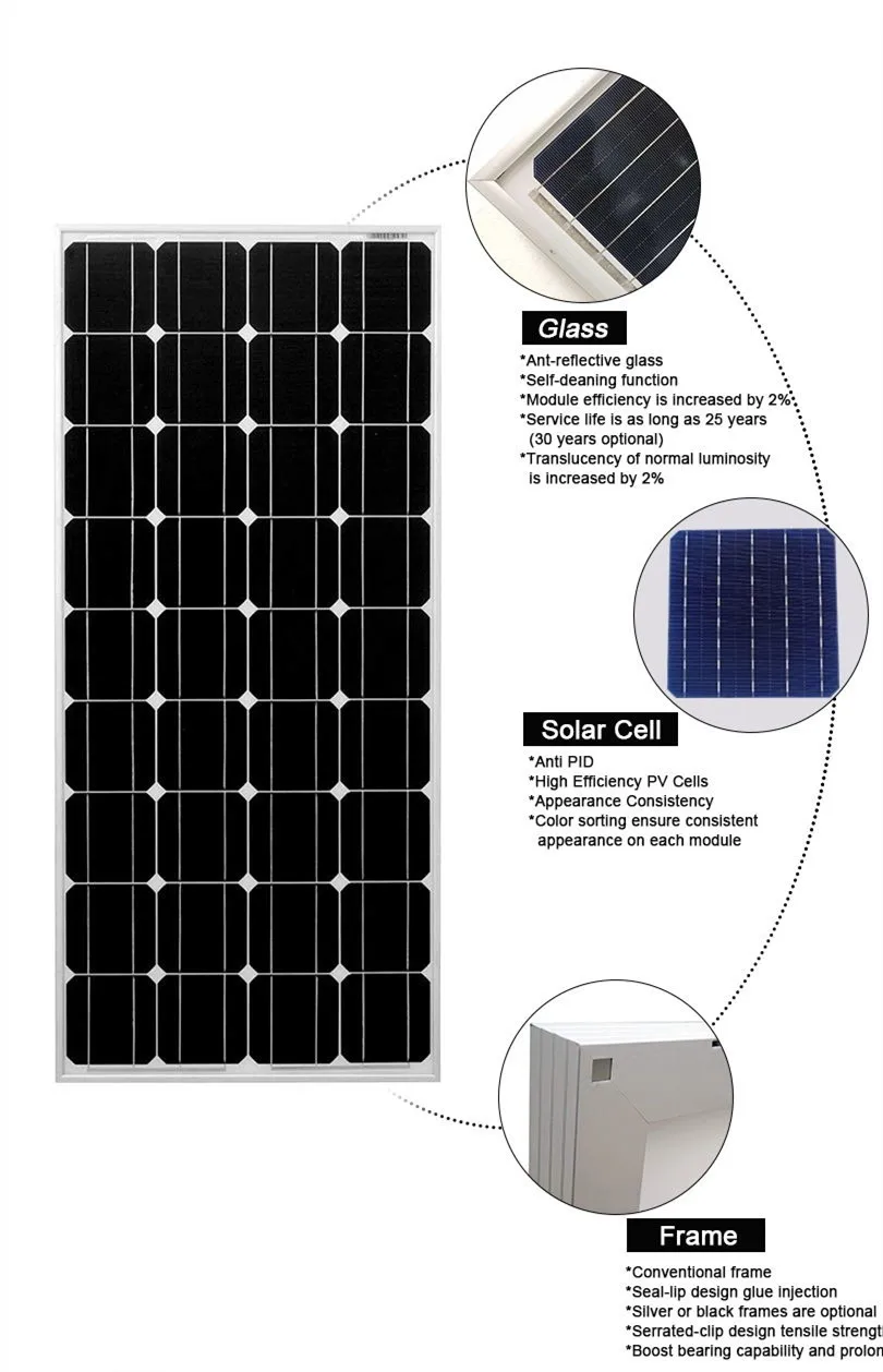 Монокристаллическая солнечная панель, 100 Вт, 12 В