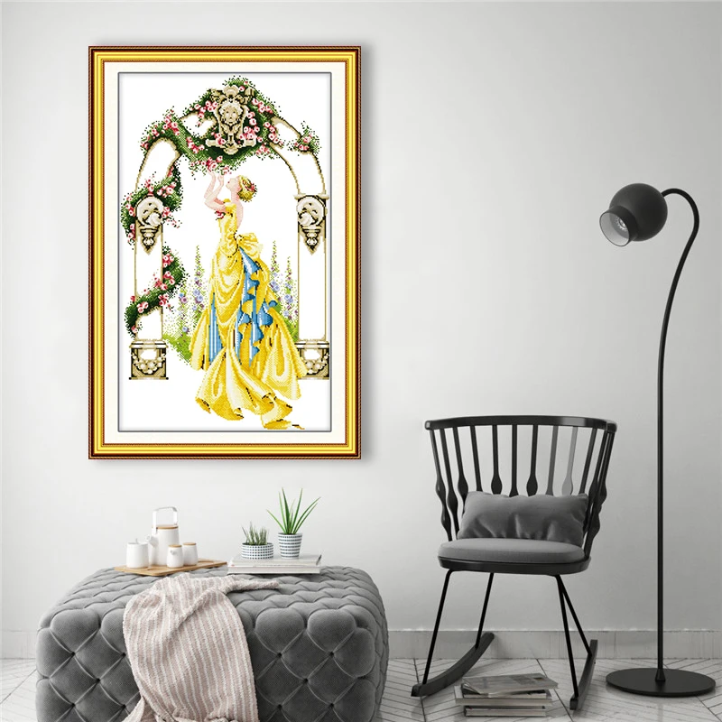 Красивая Леди пахнет Роза в ворота двор печатных холст вышивки крестом 11CT 14CT набор вышивки крестом сделай сам вышивка рукоделие