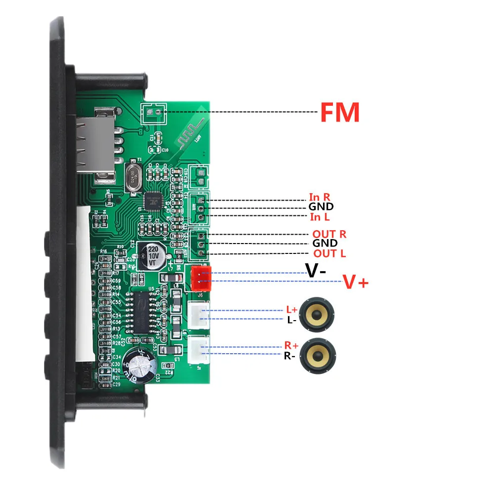 Усилитель ARuiMei 2*25 Вт, MP3 плеер, декодер, плата 12 В, Bluetooth 5,0, 50 Вт, усилитель, автомобильный FM-радиомодуль, поддержка TF, USB, AUX
