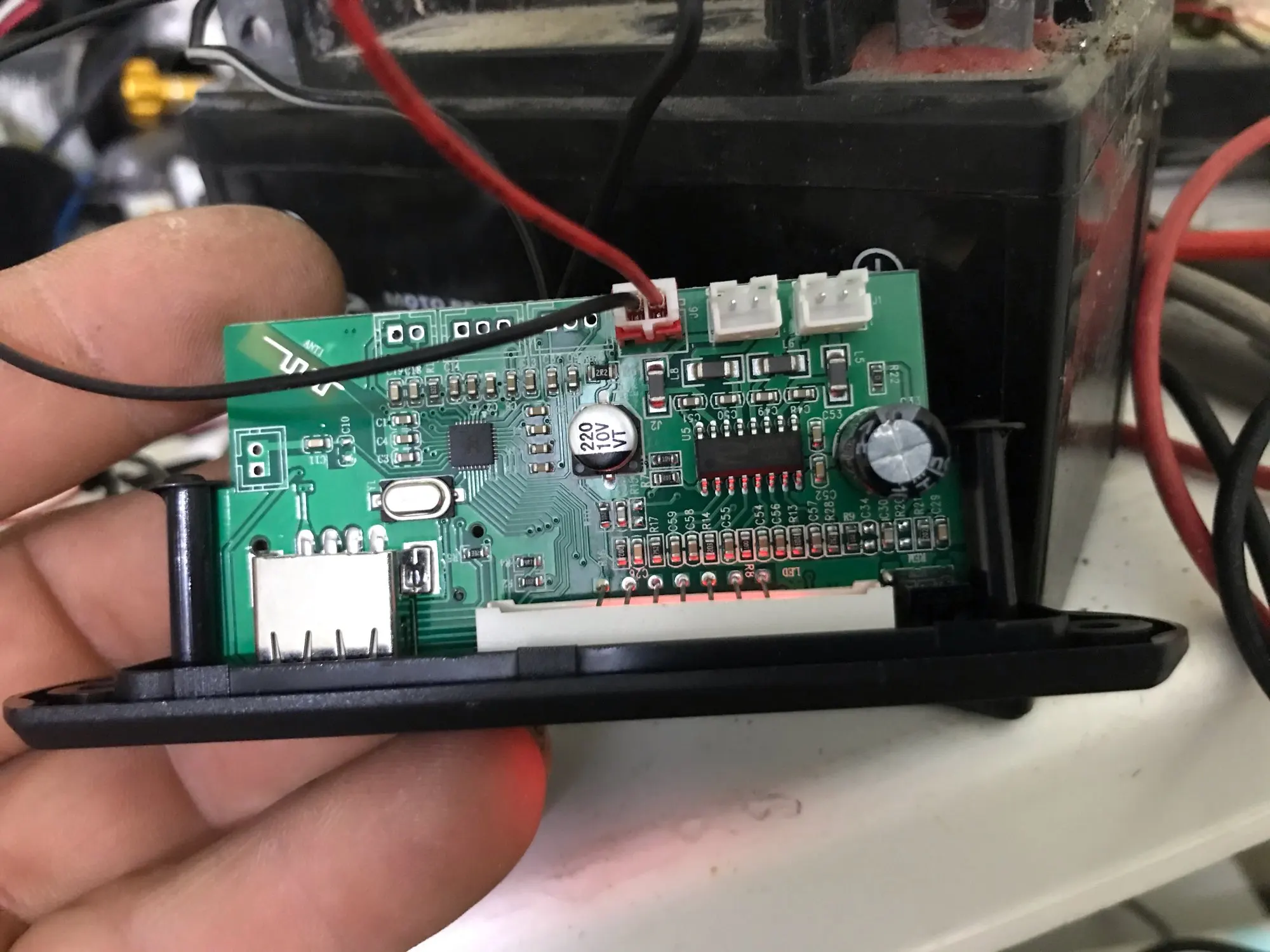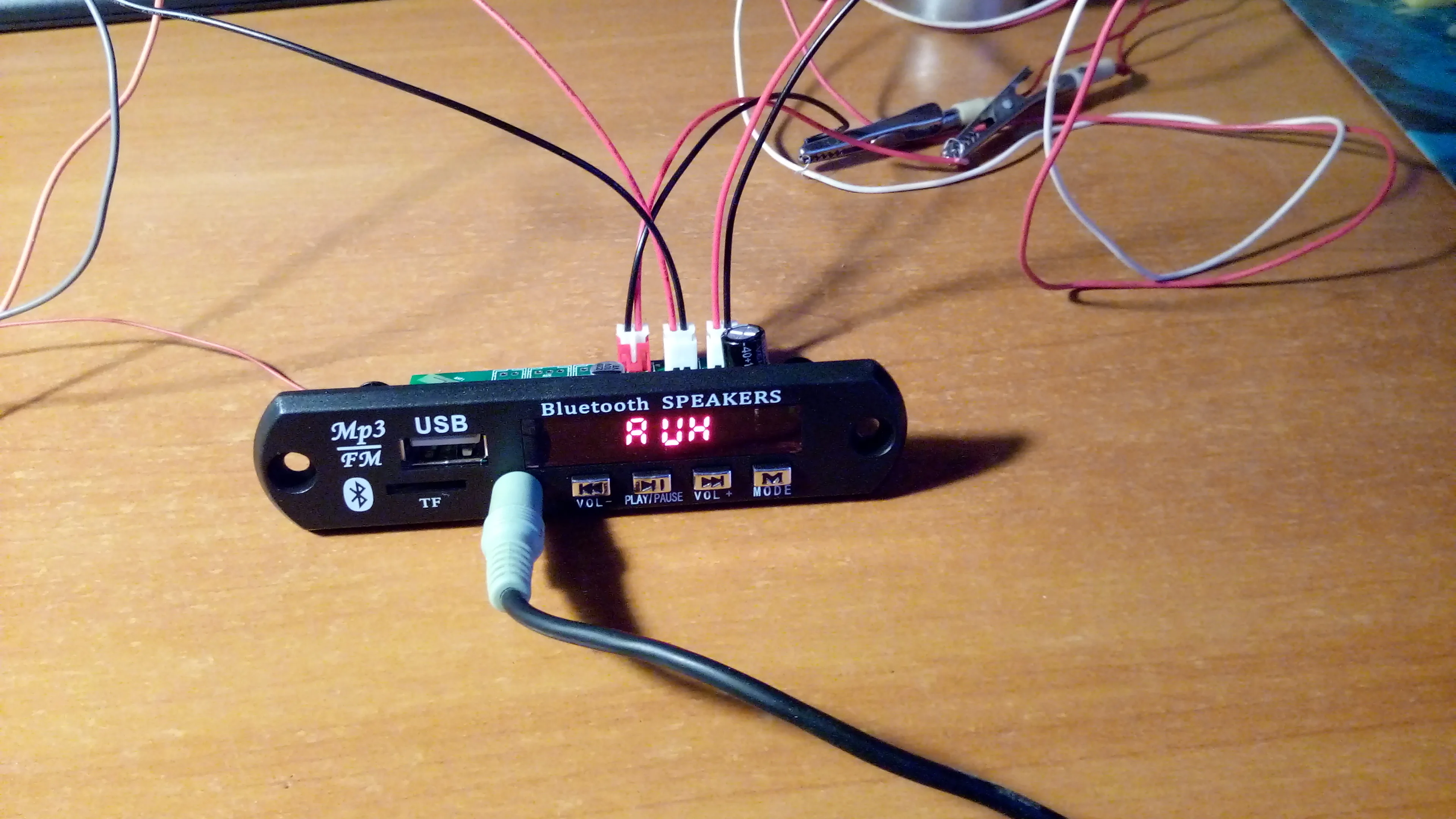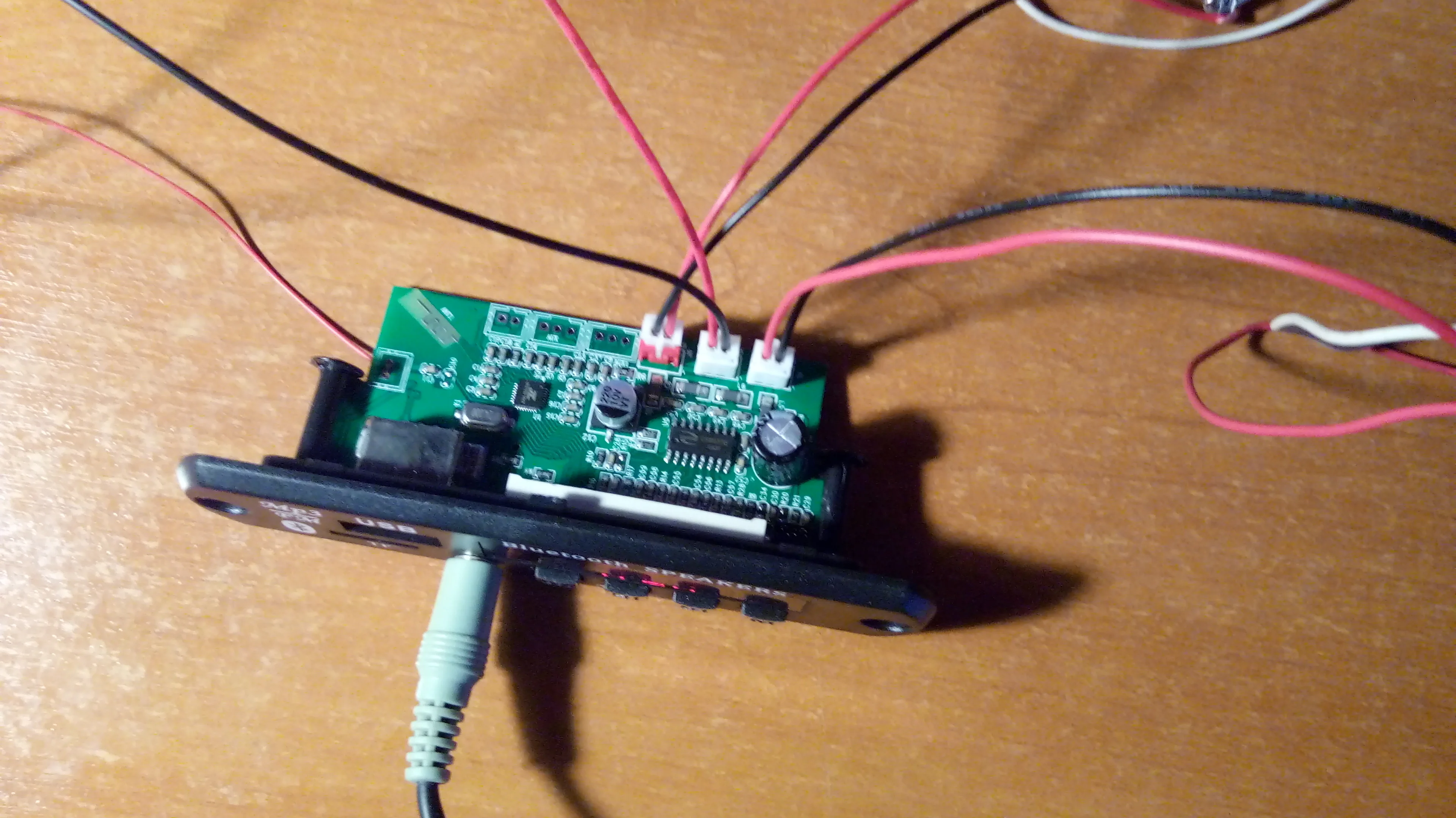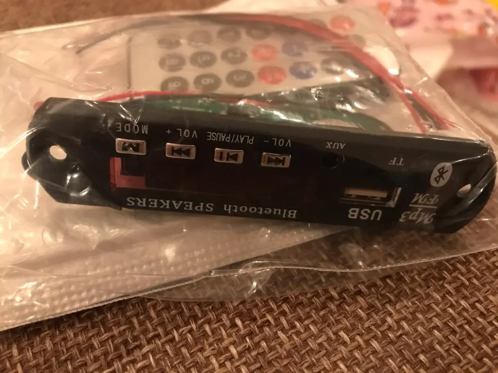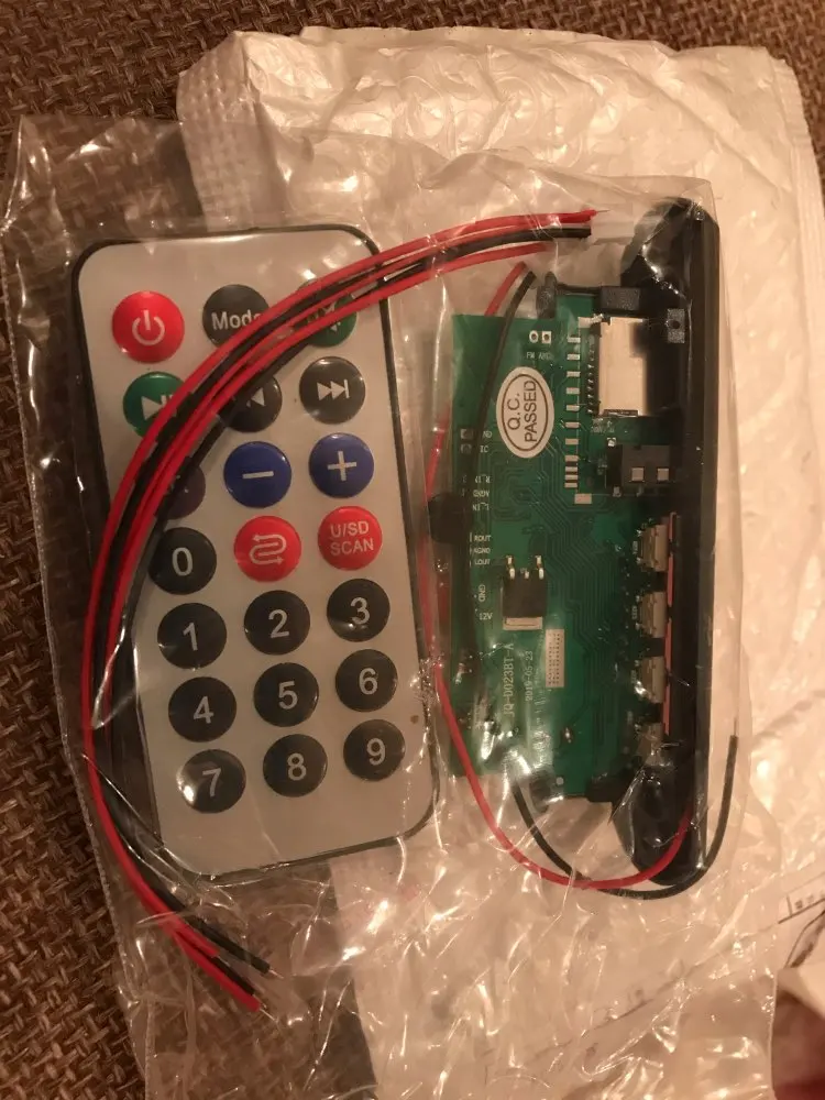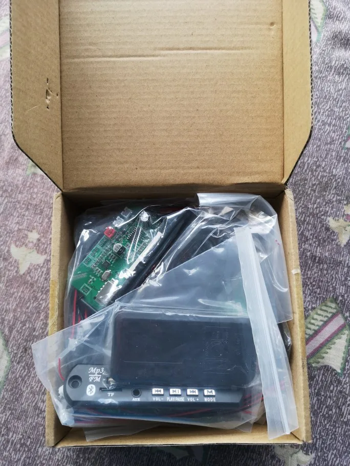 Устройство доехало целым, за месяц. Покупаю не в первый раз. За эти деньги звучит пристойно. Кому интересно: на плате стоит микросхема цифрового усилителя 2*18 ватт. Возможно конечно, что он столько выдаёт, но факт остаётся фактом. При большой мощности требует стабильное, мощное питание и хорошие провода. Те что в комплекте - в мусор. Конденсатор на плате надо ставить побольше. На большой громкости усилитель греется, наверно можно приклеить небольшой радиатор. Установлен в машине 12в, работает без проблем больше года. Описанные функции все работают, женского голоса нет, только в блютуз плюкает, когда подключается. В целом покупкой доволен