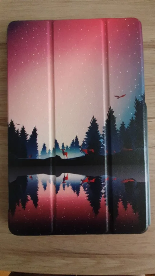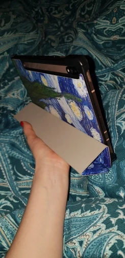 Чехол пришел быстро. Все дошло целым, без повреждений, упаковано хорошо. К чехлу продавец положил пленку на экран и стилус, за что ему отдельное спасибо. Чехол приятный на ощупь, цветастый, жене понравился. Выглядит как в описании. При открытии чехла включается экран. Продавцу 5*