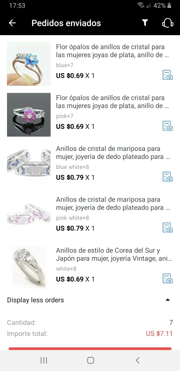 Zamówilam 20,03 и только 27,04 был отправлен! Товар, который дошёл до него Цвет сильно отличается от показанного на фотографиях продавцов Кольцо очень легкое, как будто с... Пластик (?) Только цвет «Металл» идеально серебристый Я не слишком доволен и odejmuję только один Рождество только из-за цены