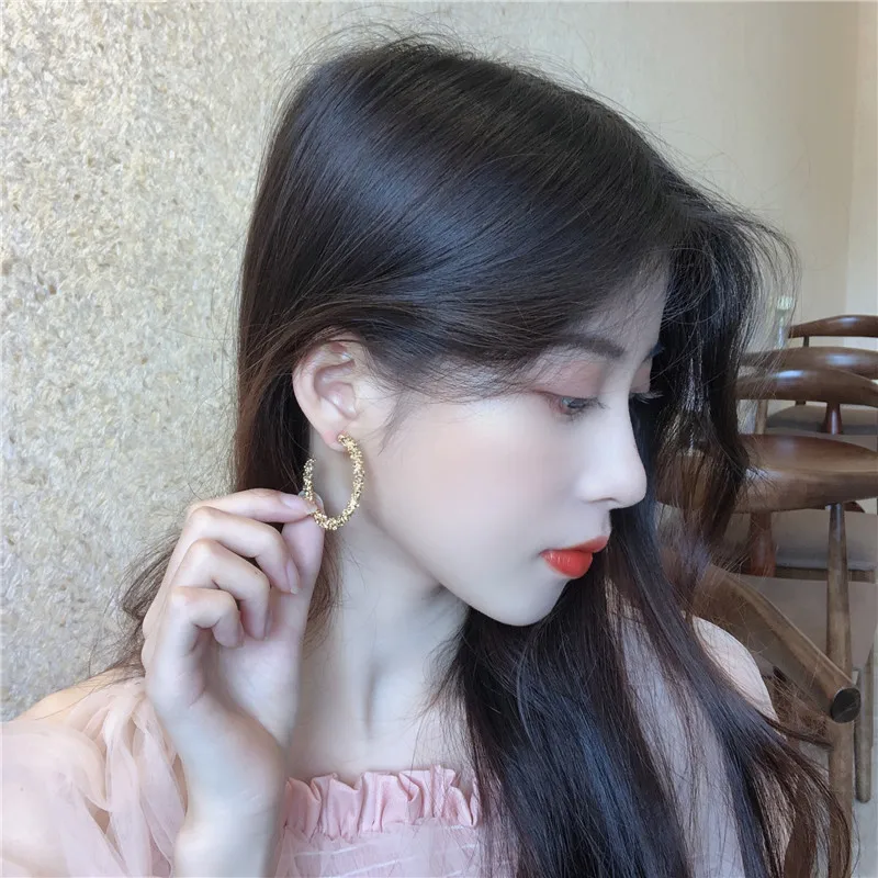 Новинка 2022, модные золотистые металлические серьги-кольца в форме с для женщин, женские большие плиссированные Эффектные серьги, бижутерия для вечеринки, Oorbellen