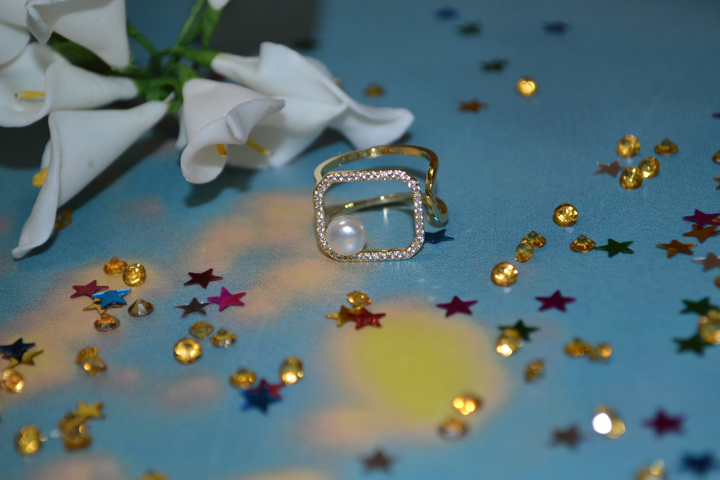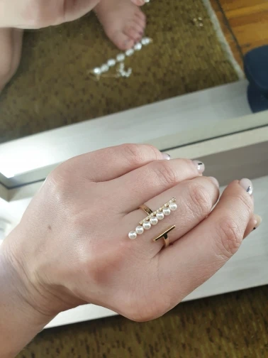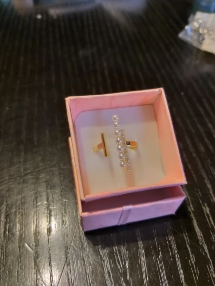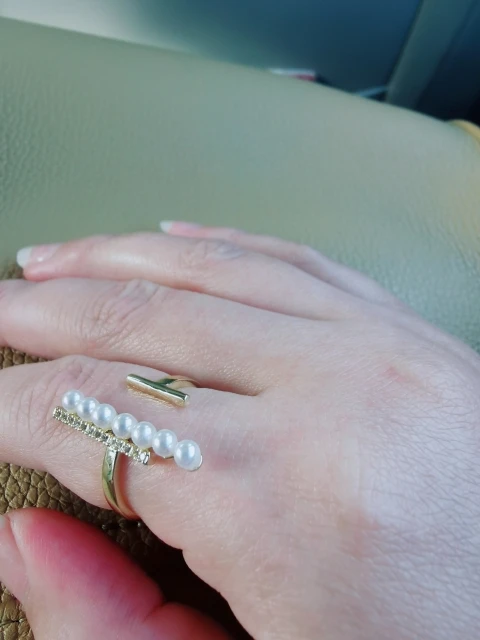 Очаровательное колечко. Прекрастный дизайн. Размер - изменяемый. Жемчуг- имитация жемчуга. Сразики сверкают. Мне очень нравится колечко . Могу рекомендовать к покупке. Доставка в Украину около месяца.