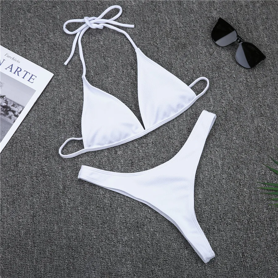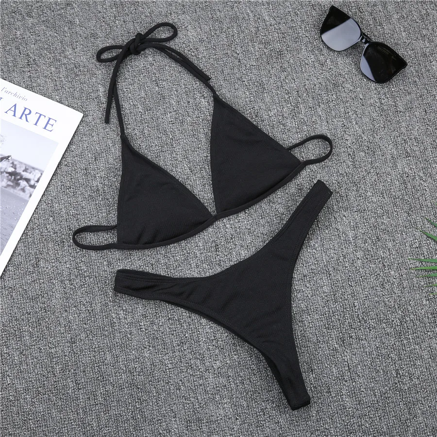 Бразильские Купальники для девочек, бикини с маленькой чашкой + пляжные бикини с высоким вырезом, однотонные черныебелые микрокупальники, стринги, бикини
