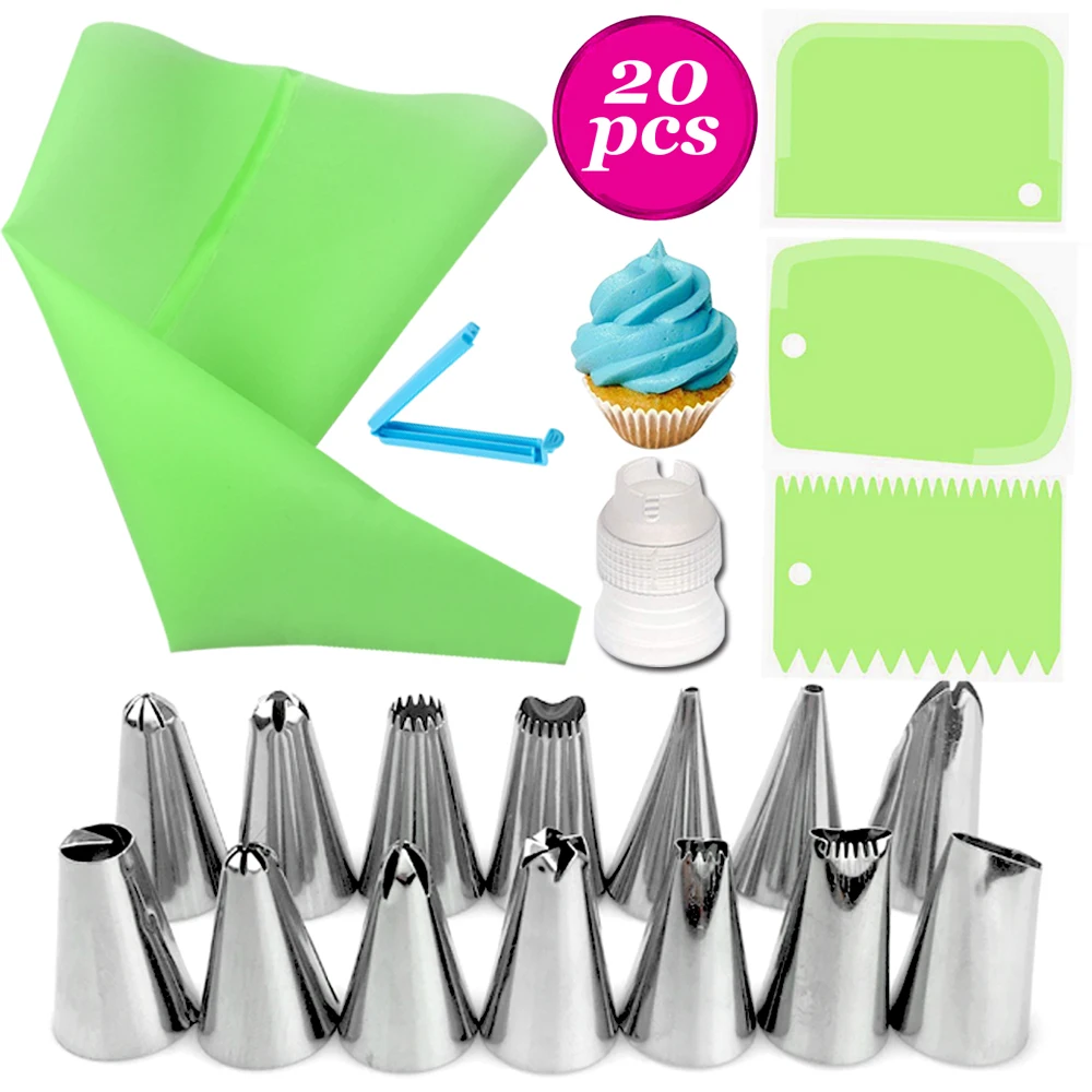 Кондитерские мешки для крема, 20 шт.компл., силиконовые кондитерские мешки для глазировки своими руками, наконечники + 14 насадок, набор для украшения тортов, кухонные инструменты