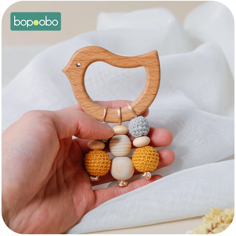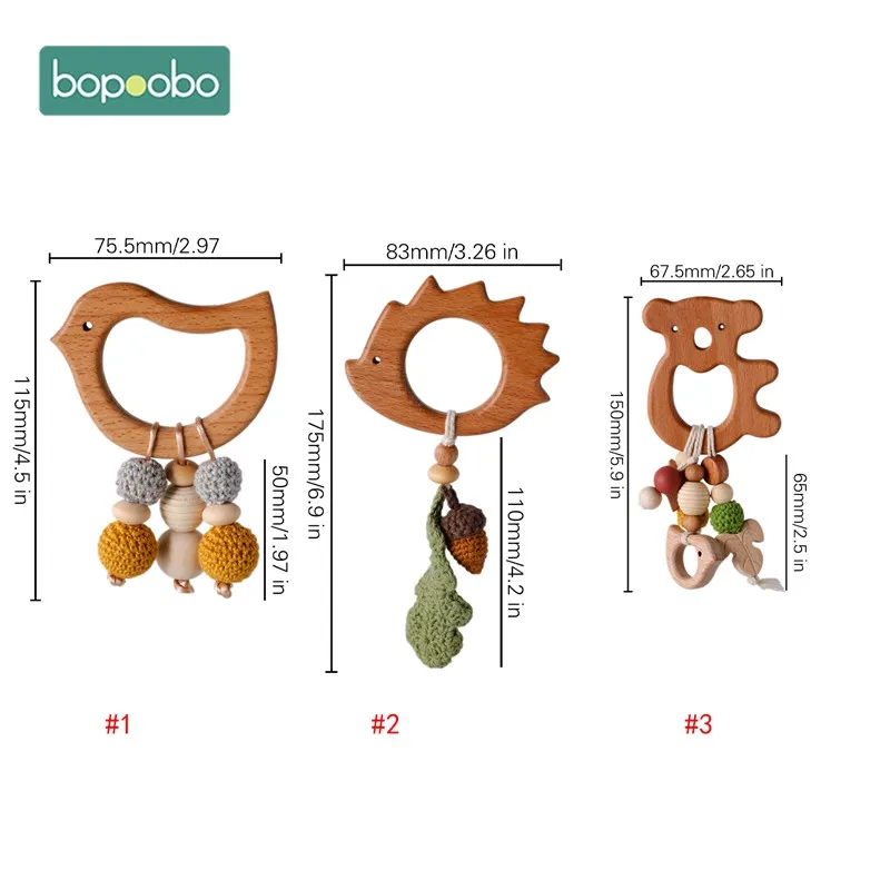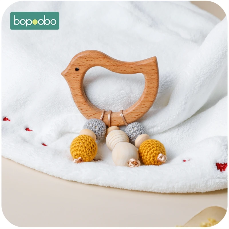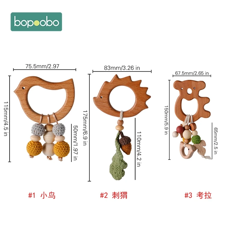 Bopoobo детские деревянные прорезыватели, жевательные силиконовые бусины, 5 шт., погремушка с животными, игровая коляска, игрушка для кормления, подвески для прорезывания зубов