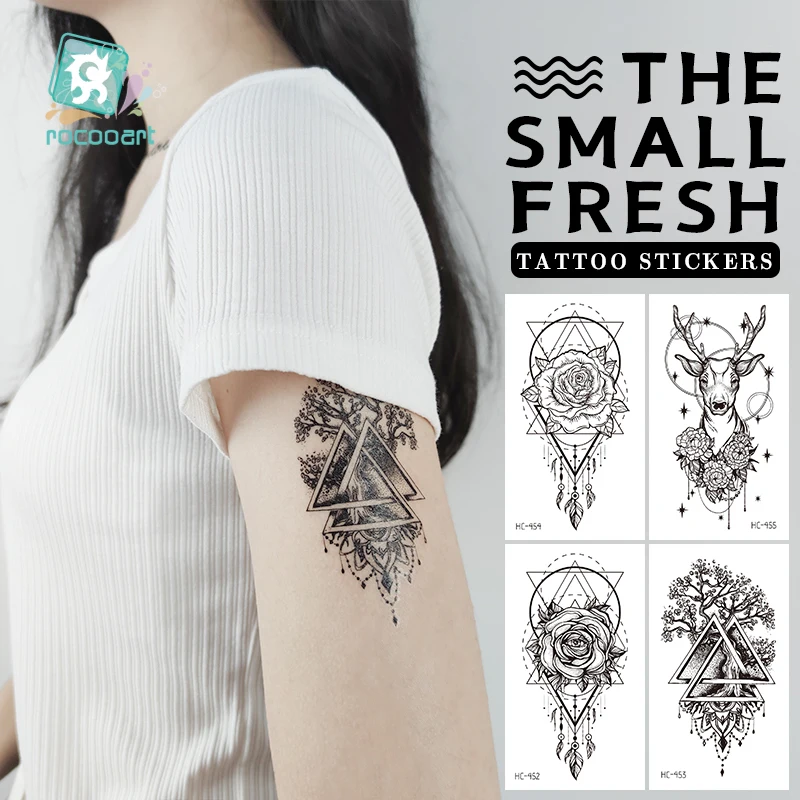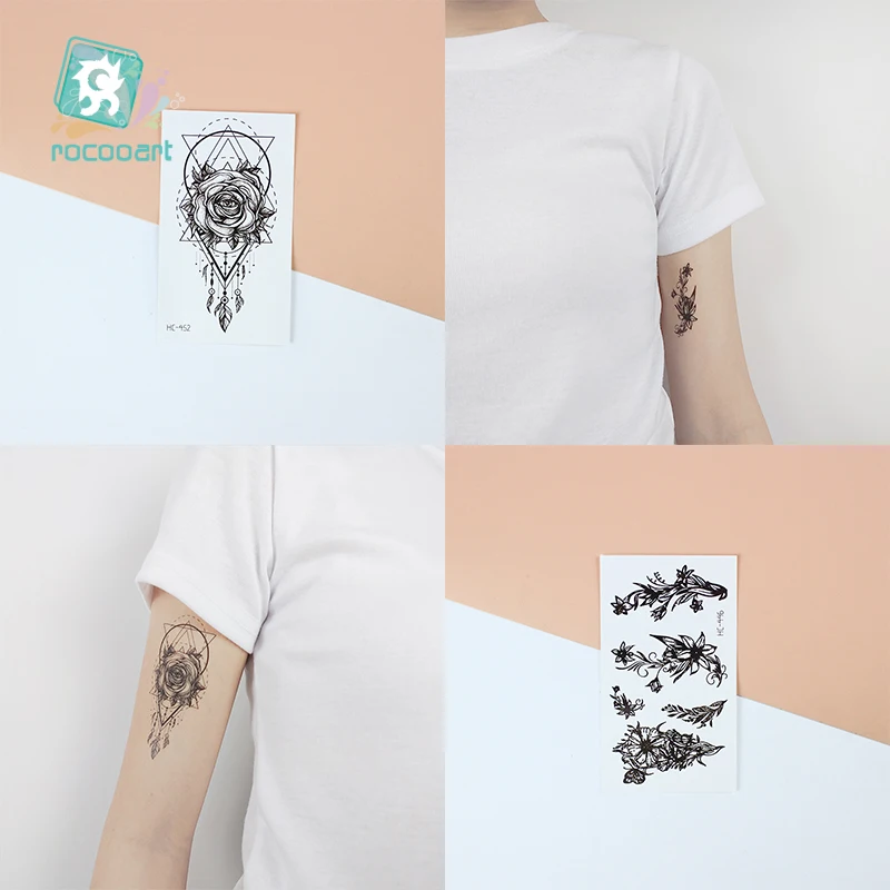 Rocooart водная переводная татуировка черная природа цветы тату боди-арт водостойкая Временная поддельная татуировка для мужчин женщин детей