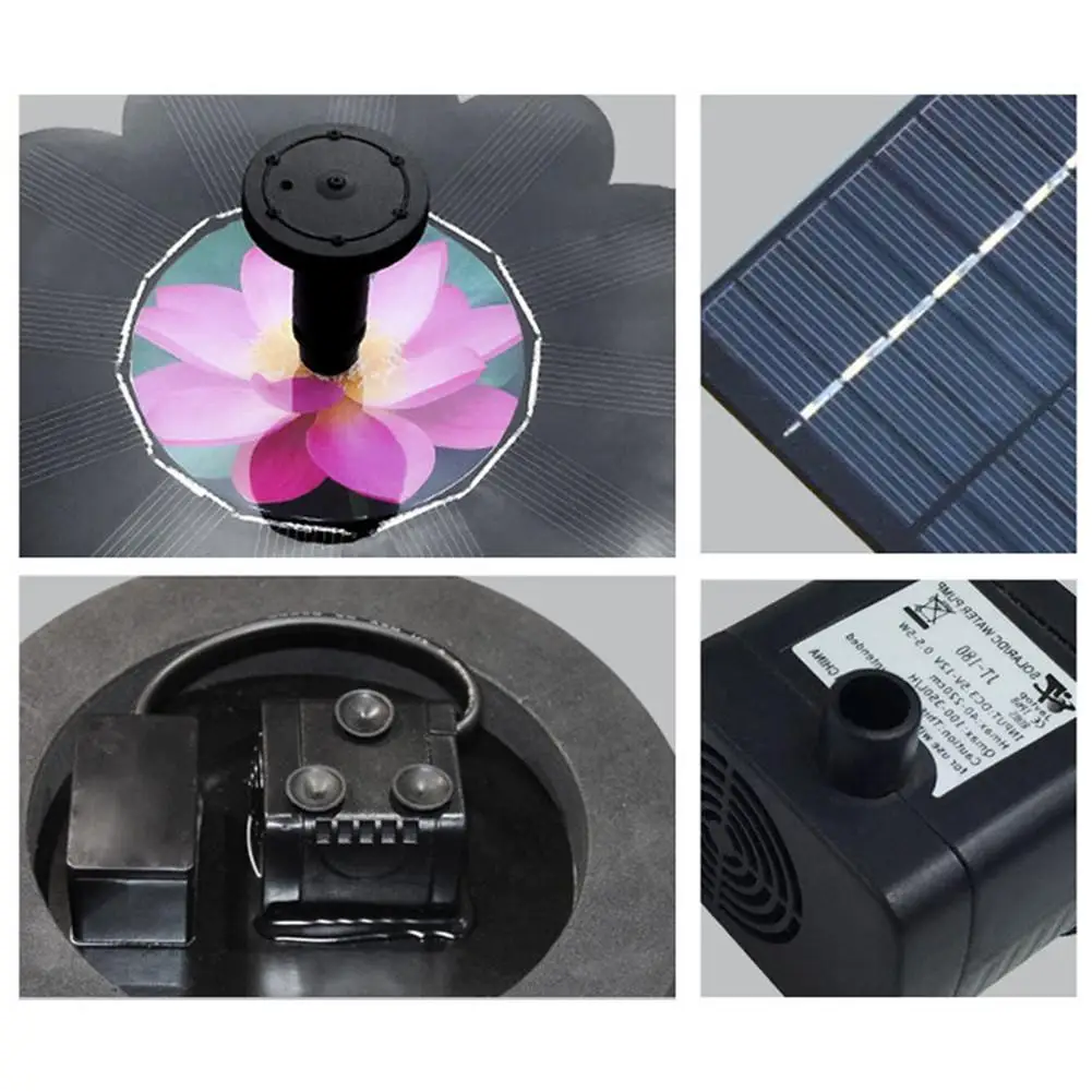 1. Экологический солнечный фонтан: этот фонтан имеет отличный Солнечный насос. Он управляется солнечной энергией и не требует батарей или электричества. Это экологический защитный солнечный насос, который может защитить окружающую среду и сэкономить ресурсы.2. Простая установка: просто поплавайте насос на воде, солнечная панель подвержена воздействию солнечных лучей, и после получения достаточного количества солнечного света фонтан автоматически распыляет воду за несколько секунд без инструментов, полностью не беспокойтесь.3. Четыре насадки: солнечный фонтан имеет четыре насадки для удовлетворения ваших различных потребностей в высоте распыления или форме распыления.4. Изысканное наружное Украшение: этот солнечный фонтан идеально подходит для птиц, прудов, аквариумов, садов, бассейнов и циркулирующей кислородом воды.5. Многократное использование: Этот экологический солнечный насос-фонтан идеально подходит для птичьих клеток, аквариумов, небольших прудов, бассейнов, садов, террас, лужаек и циркуляции кислорода. Принесет вам больше радости.Особенности: