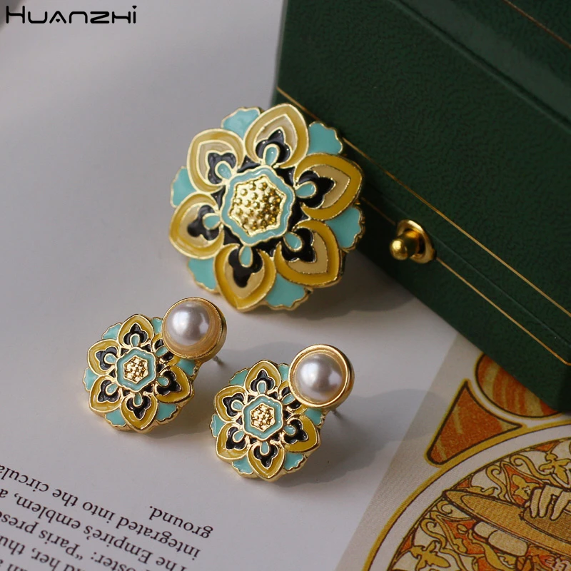 Серьги-гвоздики Женские винтажные с искусственным жемчугом и цветком, 2020