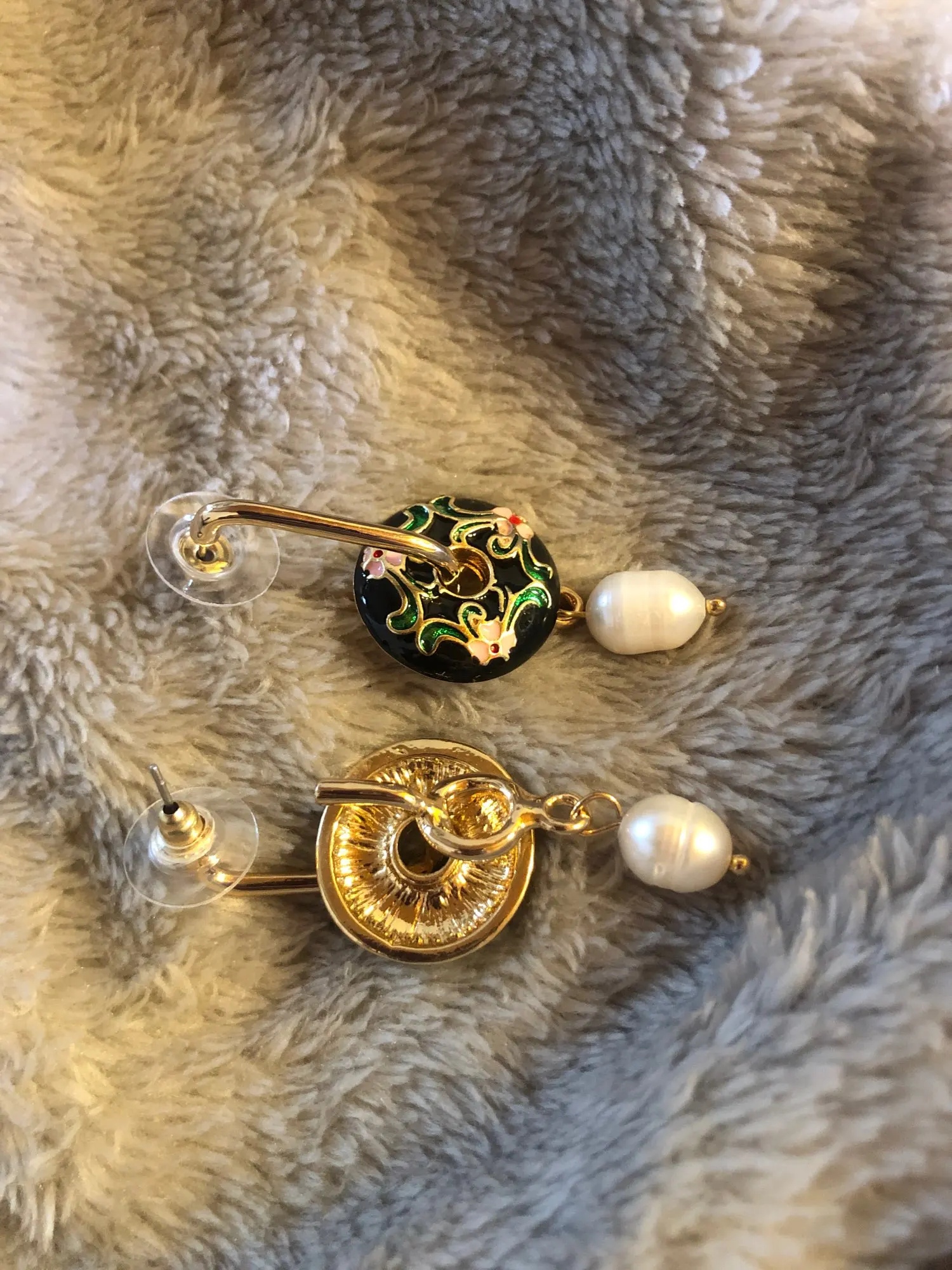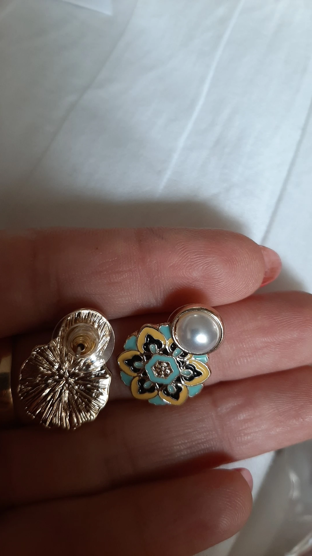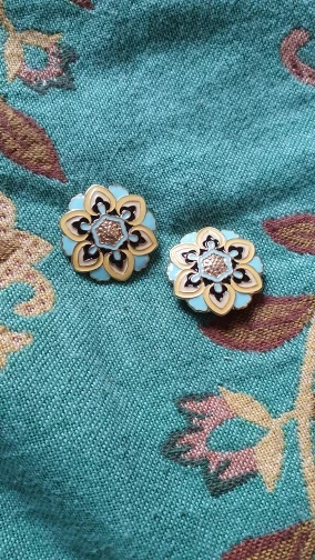 Очень красивые сережки, такие как на фото. Единственный нюанс - ножки серёжек были согнуты, и они прикреплены на краю серьги. Поэтому сережка висит на сааааамом краешке уха. Было бы лучше, если бы гвоздик был по центру.