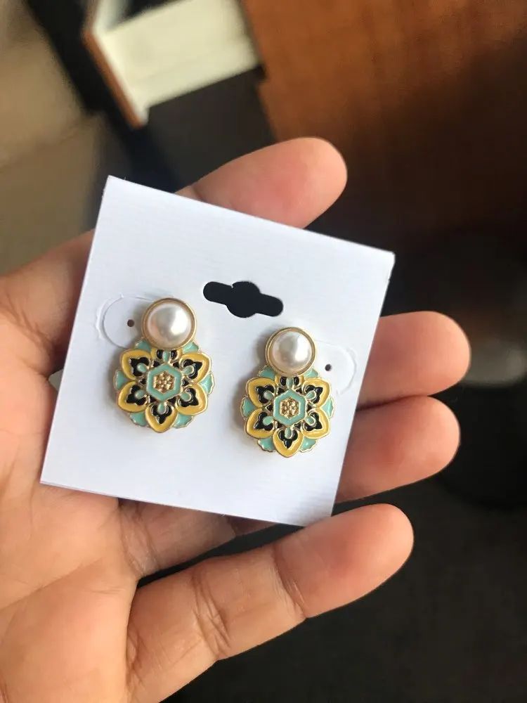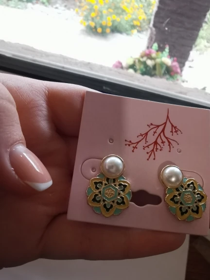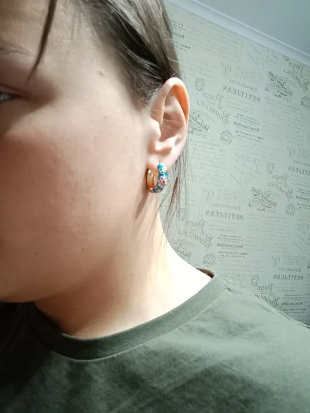 Los aretes esta iguales a la descripcion, el acabado es muy bueno, son un poco mаs grandes a cómo se percibe en la foto. Se demoraron un mes exacto en llegar./Серьги такие же, как в описании, качество очень хорошее, они немного больше, чем показано на фото. Доставка занимает точный месяц.