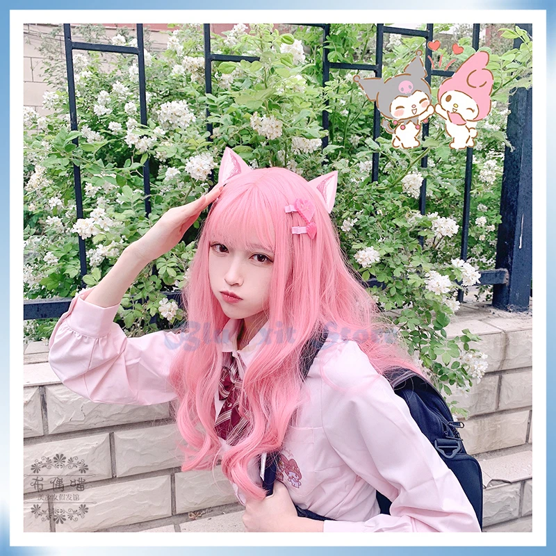Косплей-одежда в стиле лолита для девочек, милая розовая кудрявая о...
