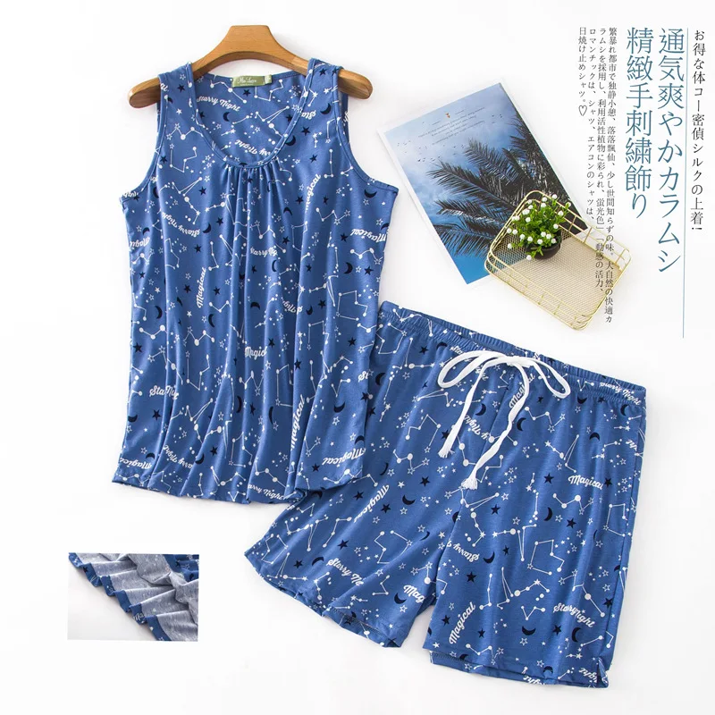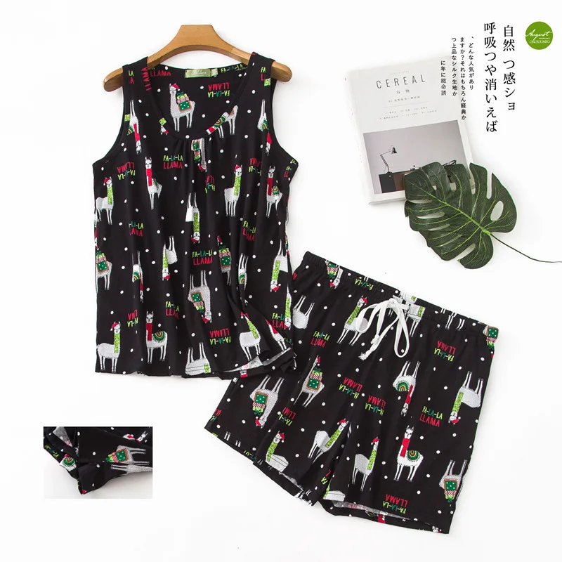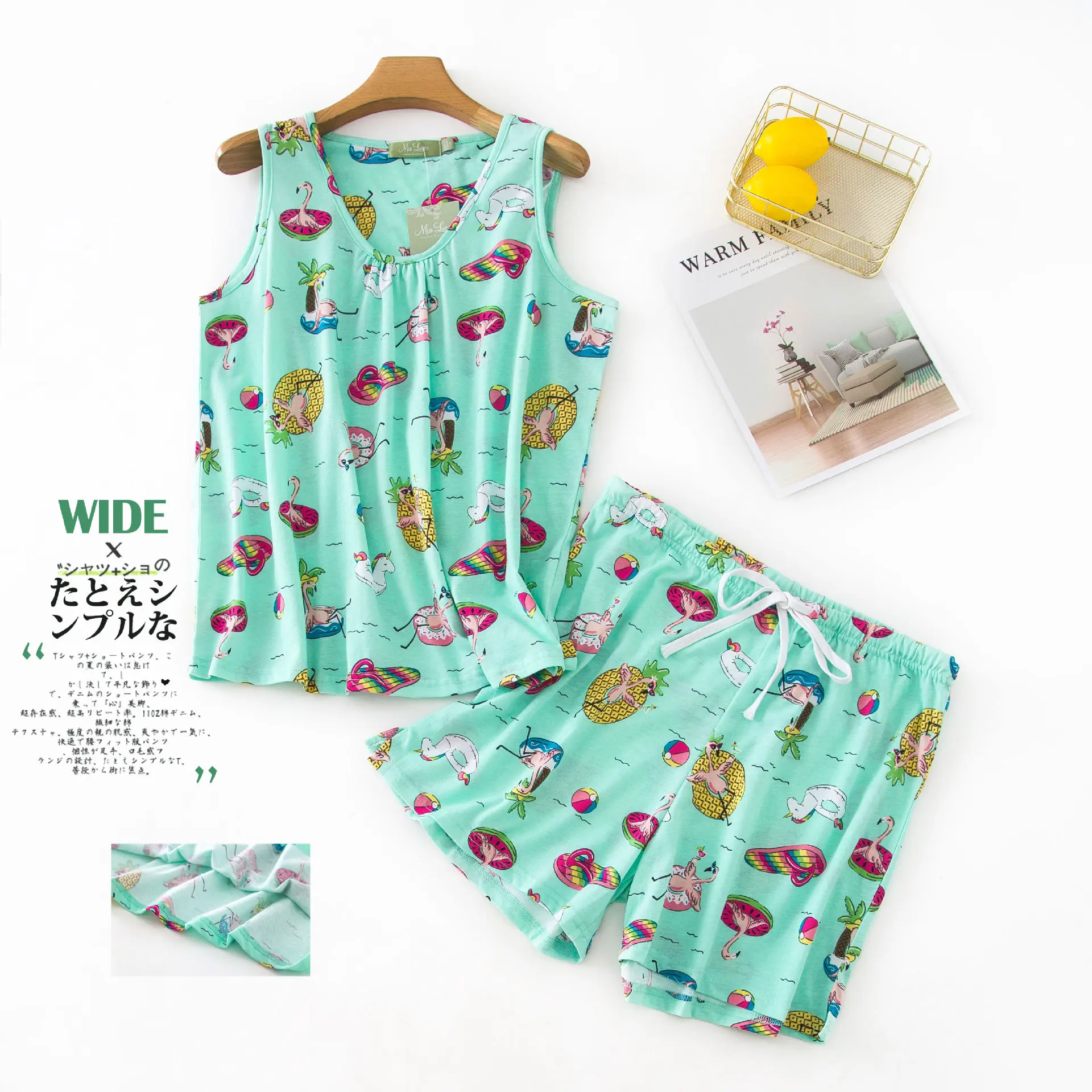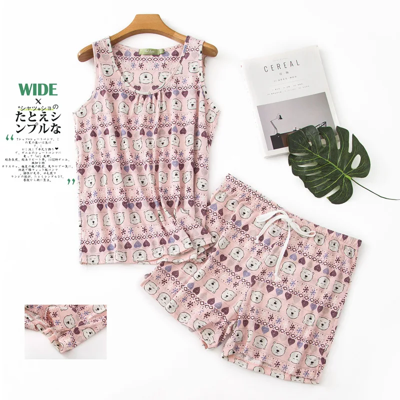 100% хлопок, женские летние модели, новинка, одежда, домашний костюм, мультяшный милый жилет, шорты, Пижамный костюм для девочек, одежда Пижам