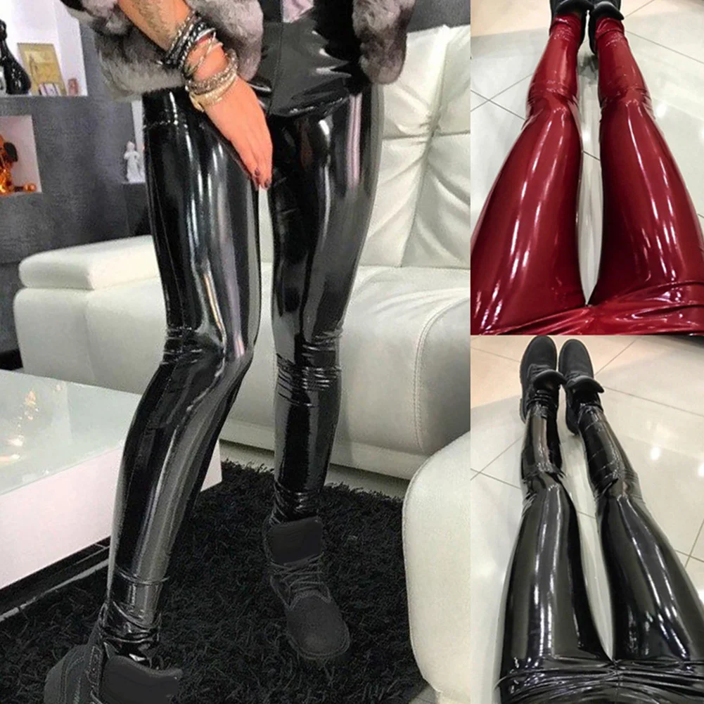 Модные женские брюки из искусственной кожи, однотонные брюки с высокой талией, узкие брюки-карандаш, женские облегающие брюки