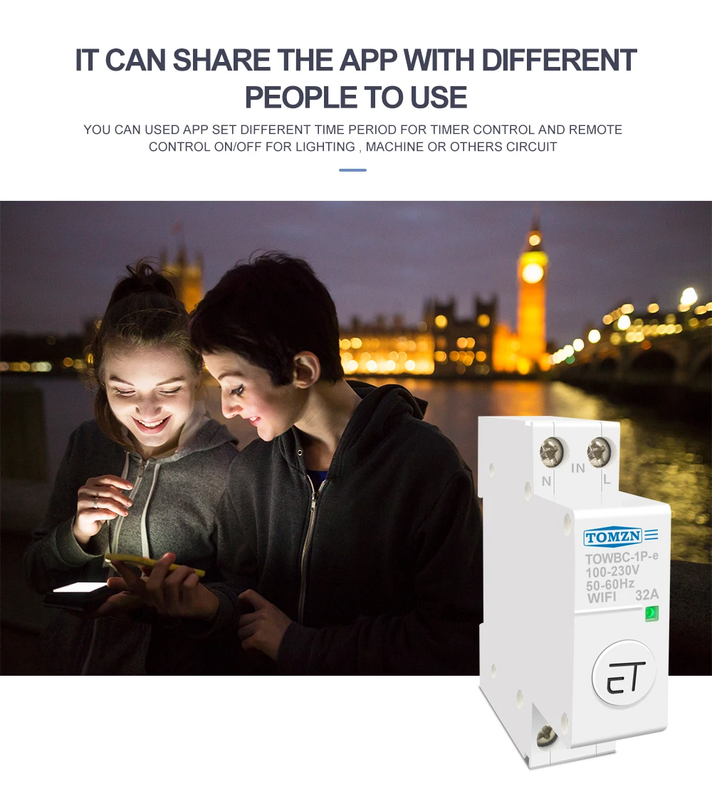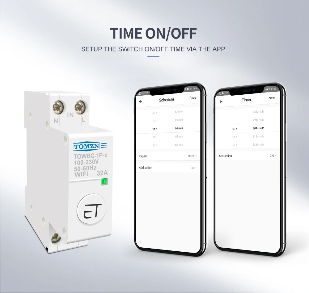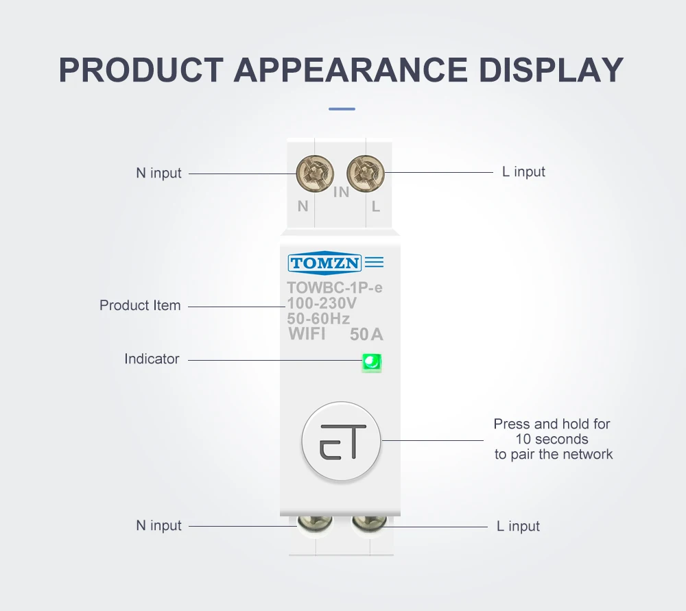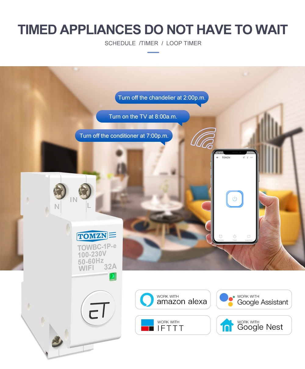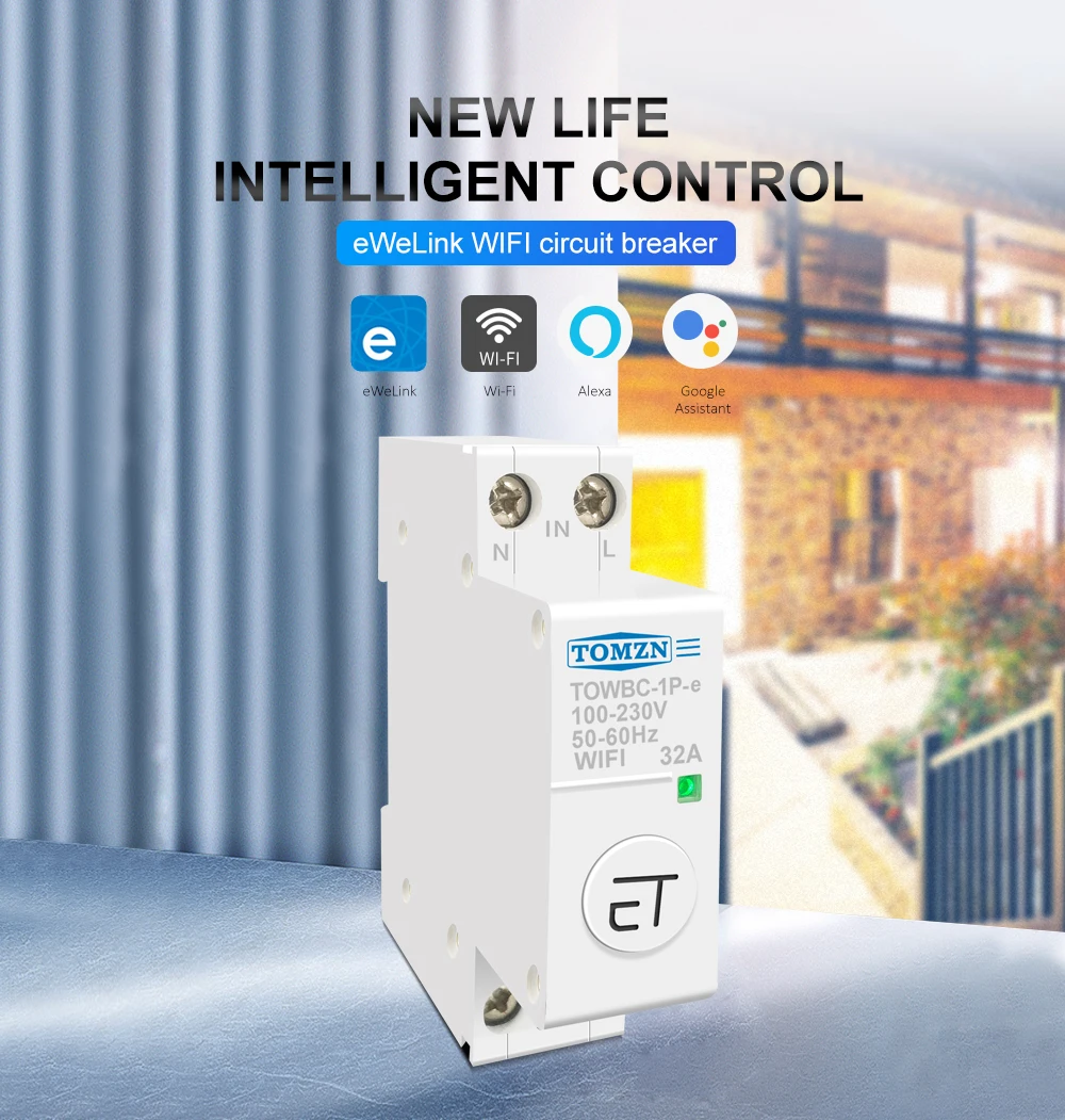 Din-рейка WIFI автоматический выключатель Умный переключатель дистанционное управление с помощью приложения Ewelink для умного дома 18 мм 32A 50A TOMZN Mini TOWBC-1P-e