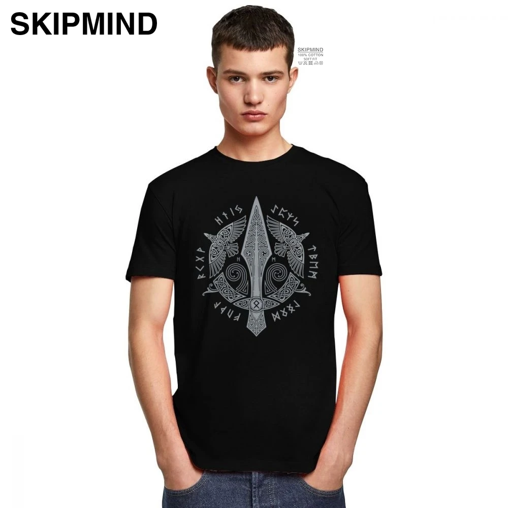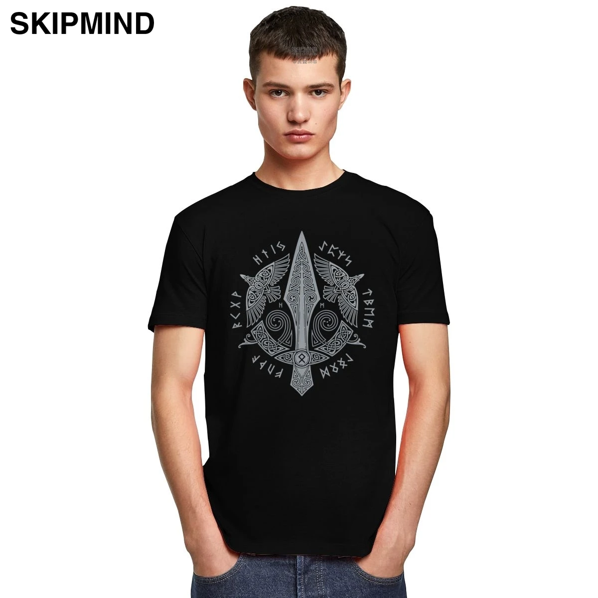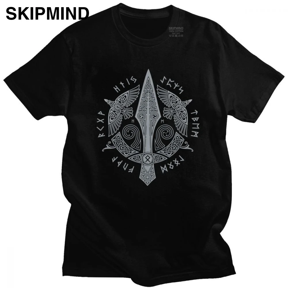 Мужская футболка Odin Vikings Sword, хлопковая футболка с коротким ...