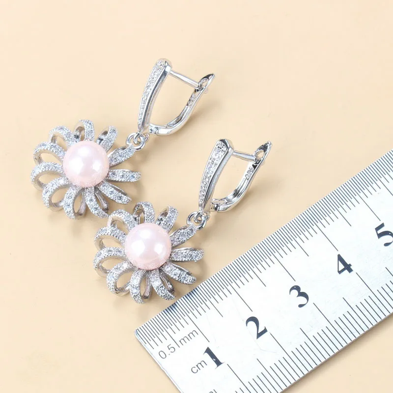 Женский Свадебный костюм из трех предметов, романтичный розовый свадебный костюм с натуральным пресноводным жемчугом и большим цветком серебристого цвета, 5 цветов