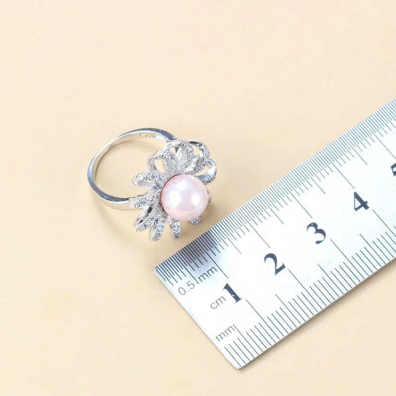 Комплект ювелирных украшений из серебра 925 пробы, Круглые, розовые...