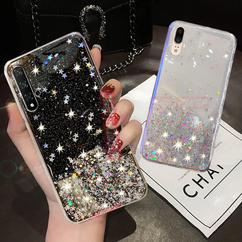 Мягкий чехол для Huawei Honor 9A, 9X, Honor 9 Lite, 9X Premium Pro, с блестками и звездами