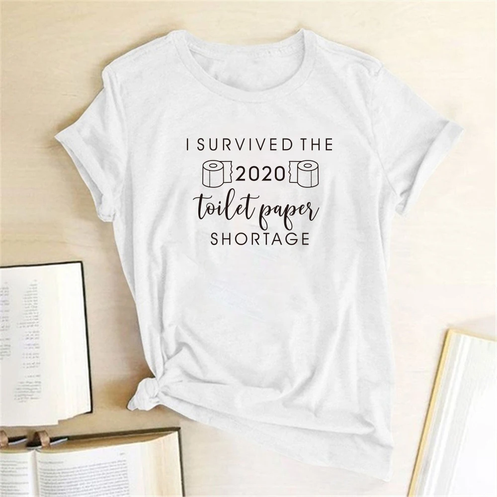 Я пережила 2020 туалетная бумага нехватки печати футболки женские рубашки летняя женская одежда повседневные футболки из хлопка для женщин Harajuku