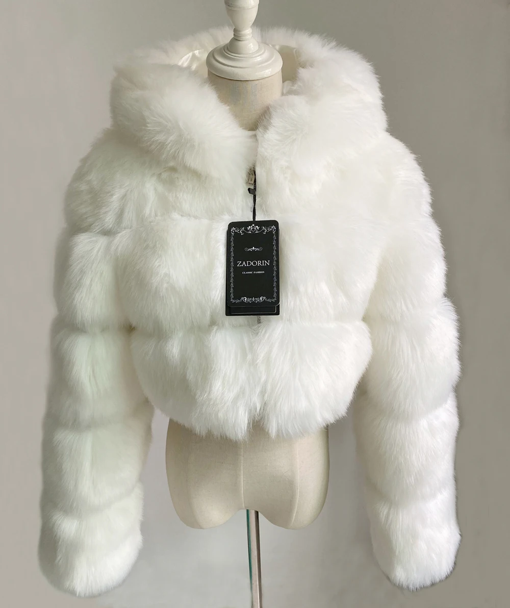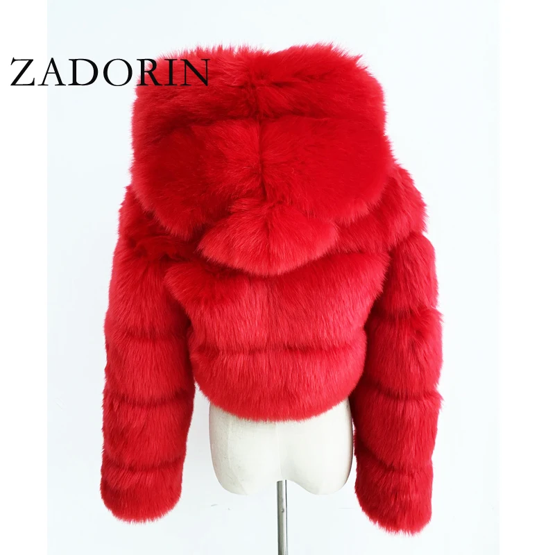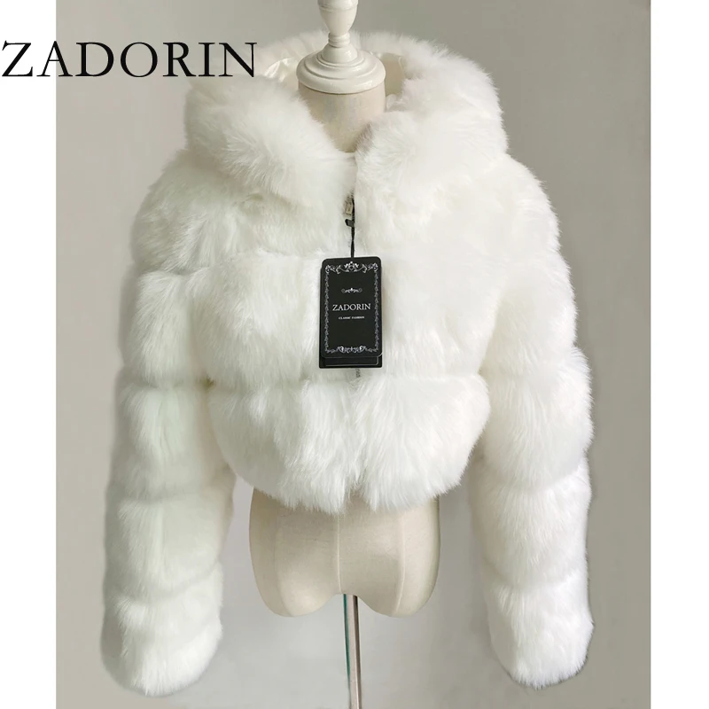 Высококачественные пушистые укороченные пальто и куртки ZADORIN из искусственного меха, женское пушистое пальто с капюшоном, зимняя меховая куртка, манто для женщин