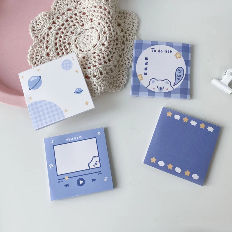 Блокнот для записей с голубой планетой 50 листов, блокнот для записей в Корейском стиле с милым медведем для студентов, канцелярские принадлежности