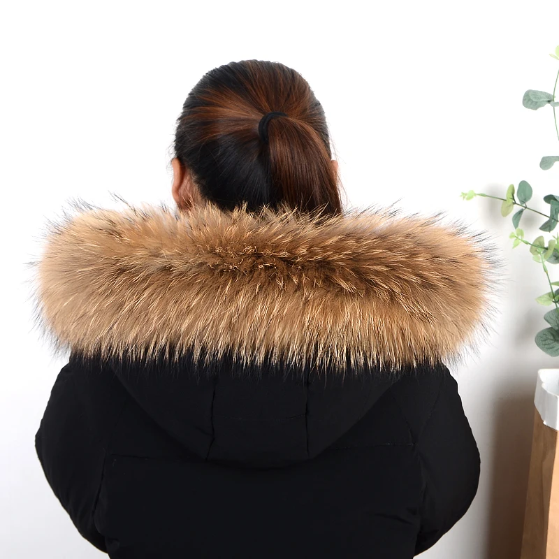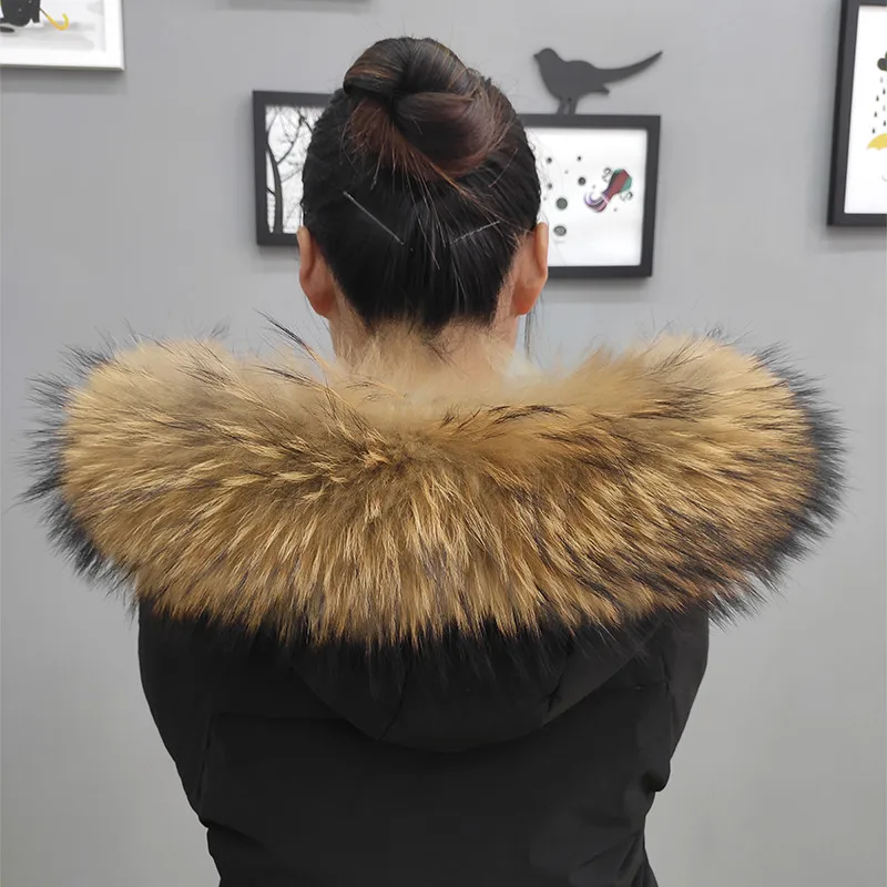 Шарф из натурального меха енота, зимний капюшон из декоративная шаль меха енота, шарф, зимнее пальто, меховой воротник