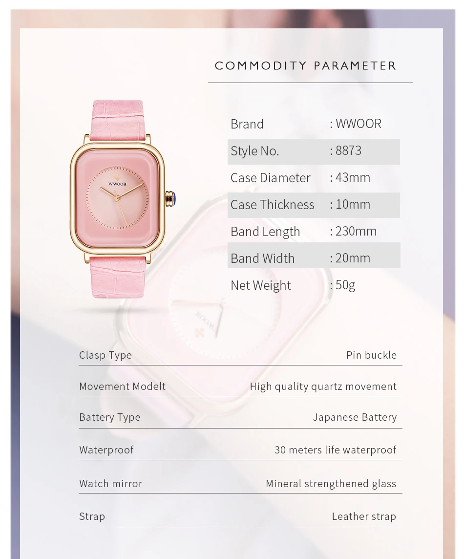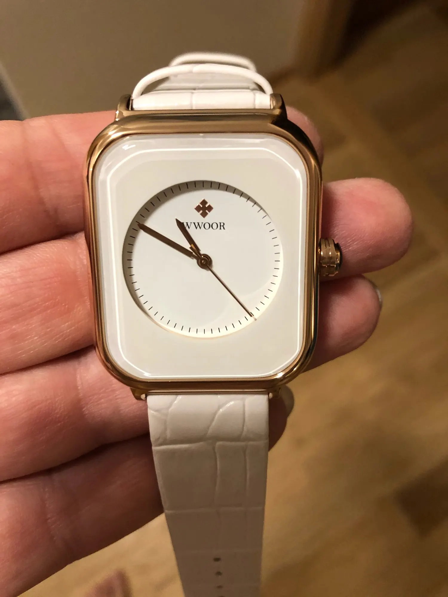 Модные женские часы 2022 WWOOR, белые минималистичные прямоугольные Женские кварцевые наручные часы с кожаным ремешком, Relogio Feminino Montre Femme