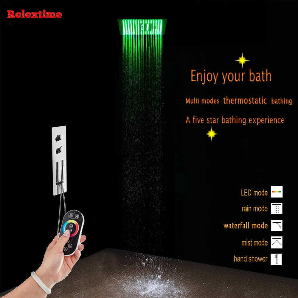 Новый Стиль скрытая ванная душевая панель 4 выхода пути термостатический смеситель сСвечение соплаСветодиодный встраиваемый потолочный Душ с дождевой насадкой, водопадом и распылителем BF4301
