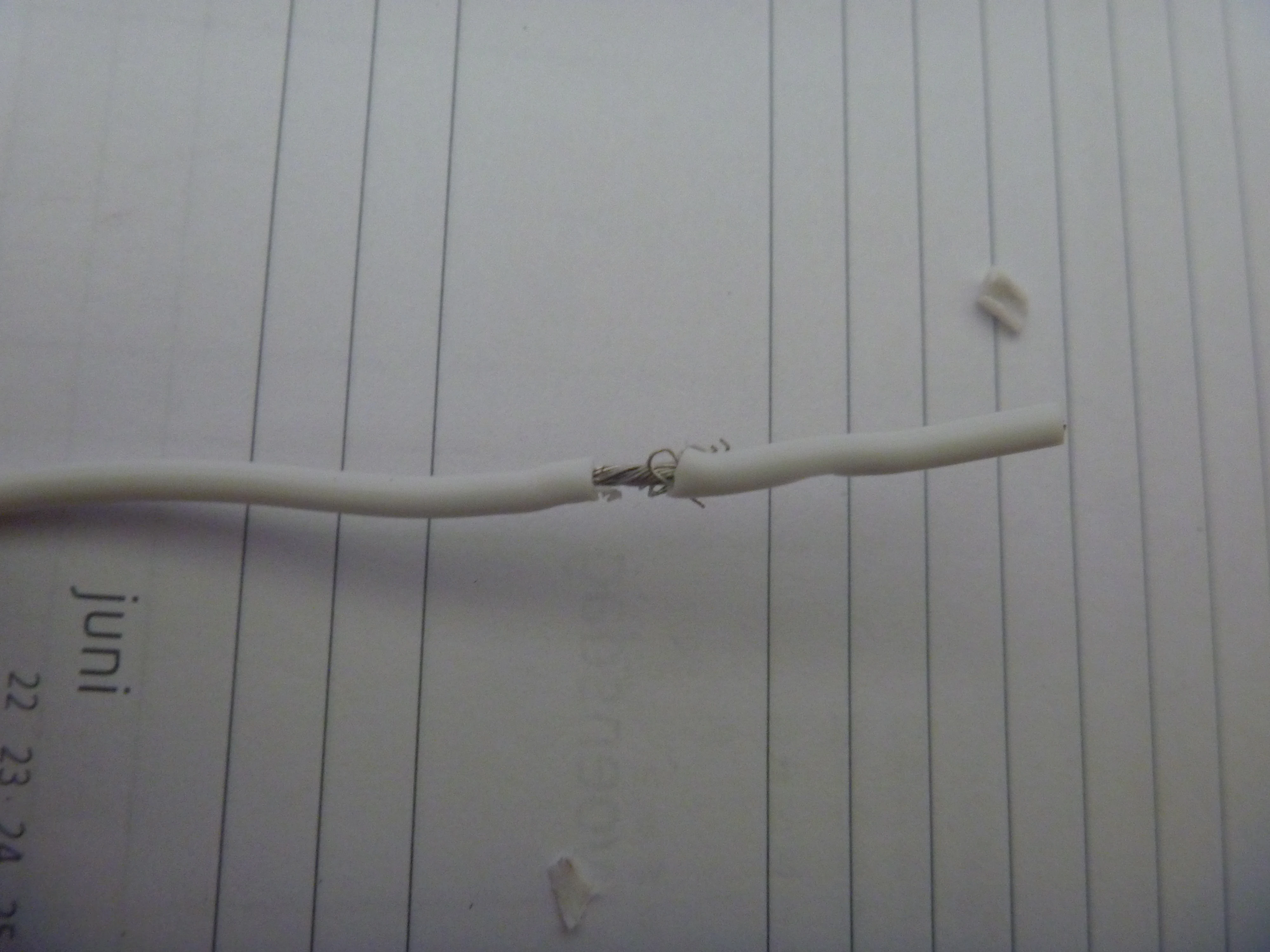 Six of the metal wires in the cable are partly melted in the silicone insulation. Those metal wires stick in the silicone insulation. It is not possible to remove the silicone from the six wires. Stripping of the cable is not possible!