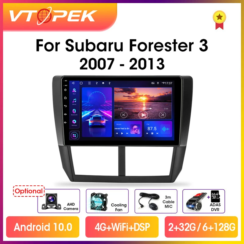Автомагнитола Vtopek 2DIN, мультимедийный видеоплеер, 9 дюймов, 4G + Wi-Fi, GPS-навигация для Subaru Forester 3 SH 2007-2013
