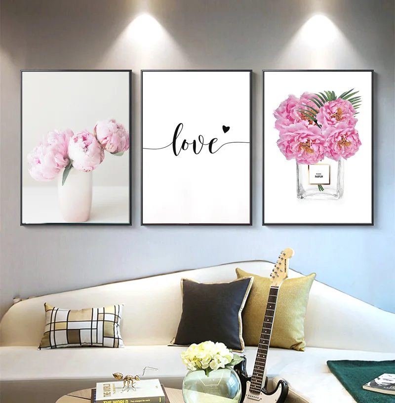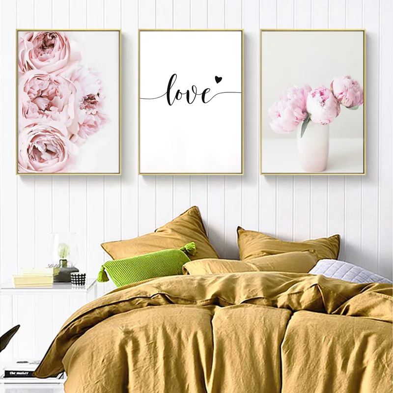Картина на холсте, скандинавский декор, розовый цветок пиона, Постер и принт, любовь, настенное искусство, цветочный рисунок, декор для спальни, украшение для дома